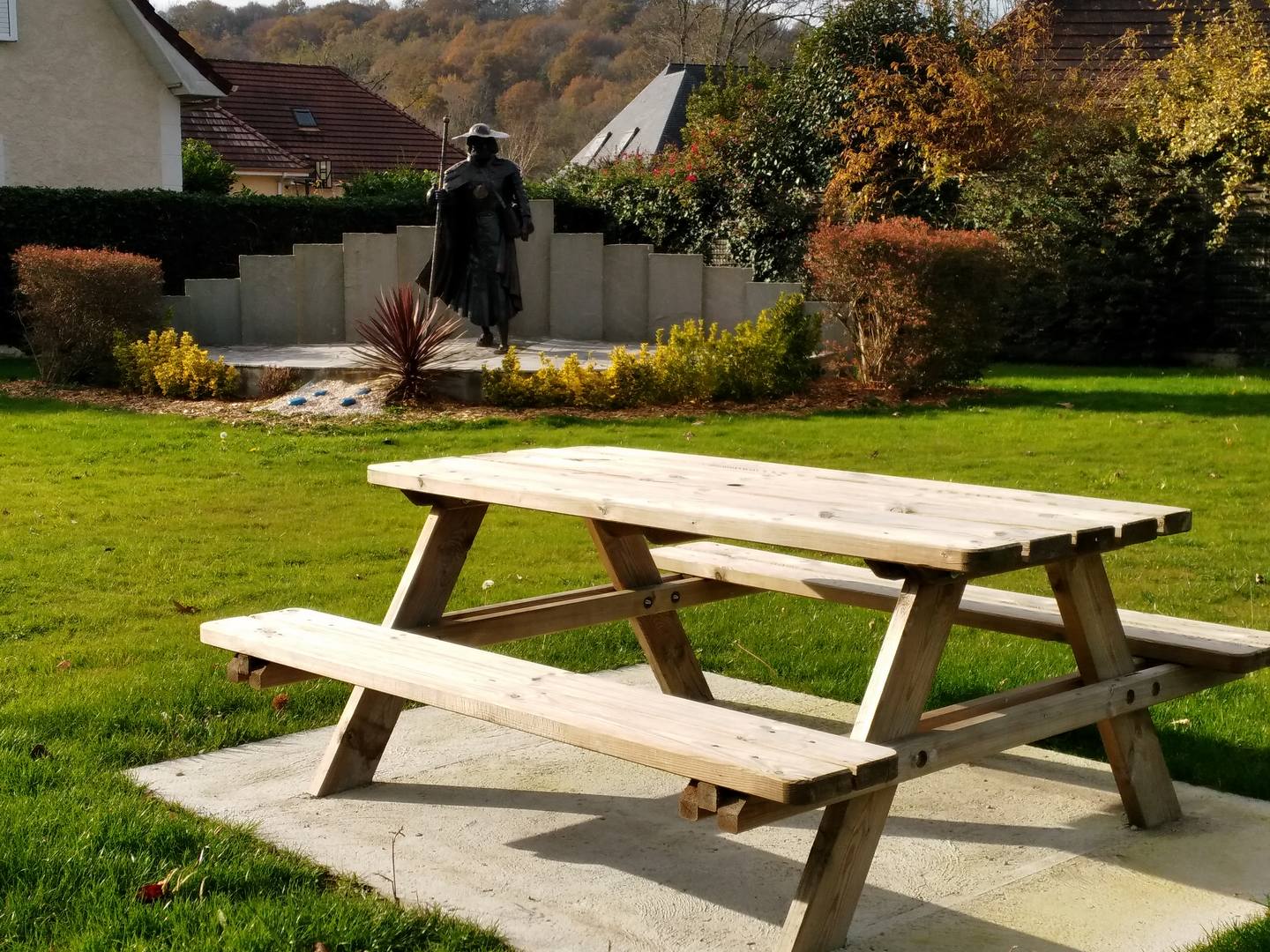 En sortant du village, direction Arbus on peur voir les restes de l'ancien château du 14 ème siècle qui servait de demeure de chasse à Gaston Fébus. De l'autre côté, sur la route principale, au pied d'une statue de "pèlerin", vous trouverez deux tables de pique nique, dans l'herbe, pour une pause au cours de vos balades.