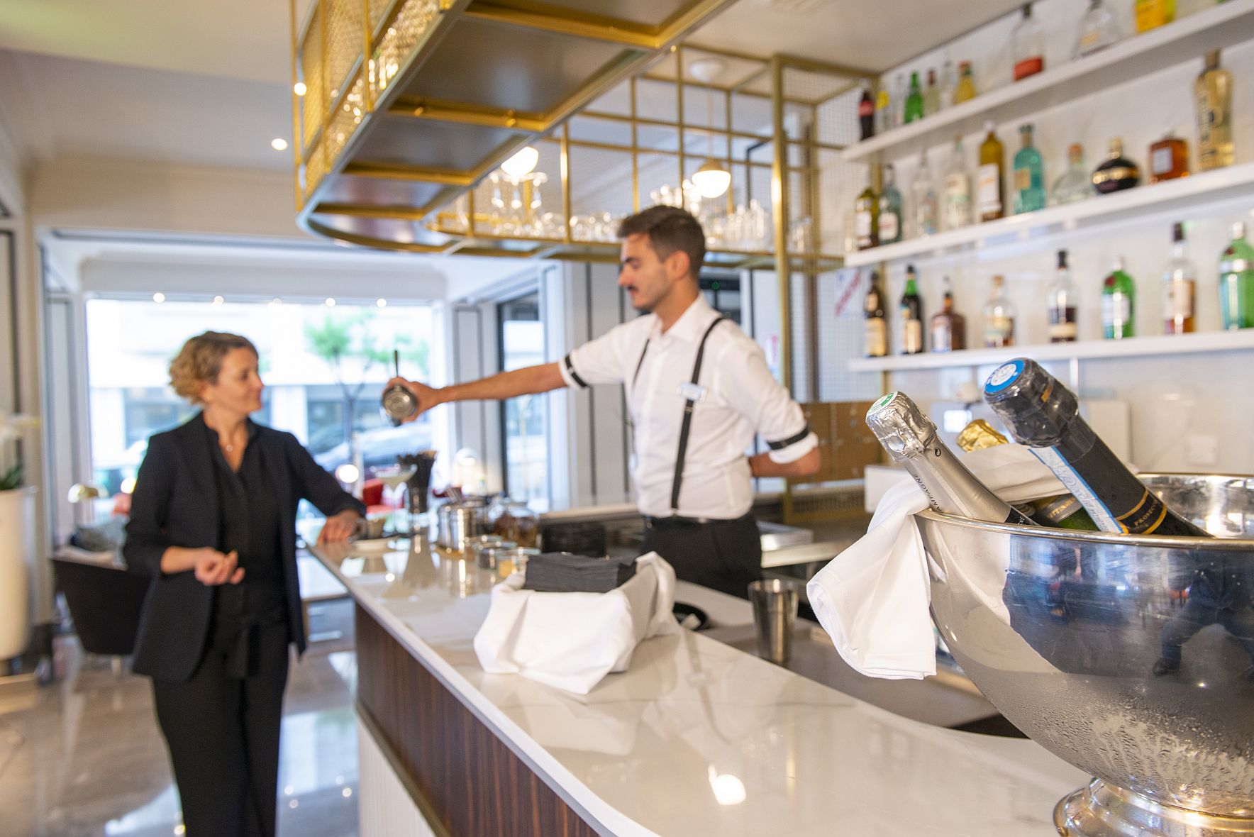 Situé en plein centre-ville de Biarritz, venez pour profiter de notre terrasse vue sur mer, surplombant la Grande Plage. Venez découvrir nos nombreux Cocktails "signature", ainsi que notre large sélection de vins. Vous recherchez un endroit calme pour travailler ? Vous avez à votre disposition un espace de travail avec l'accès Wifi dans le bar.