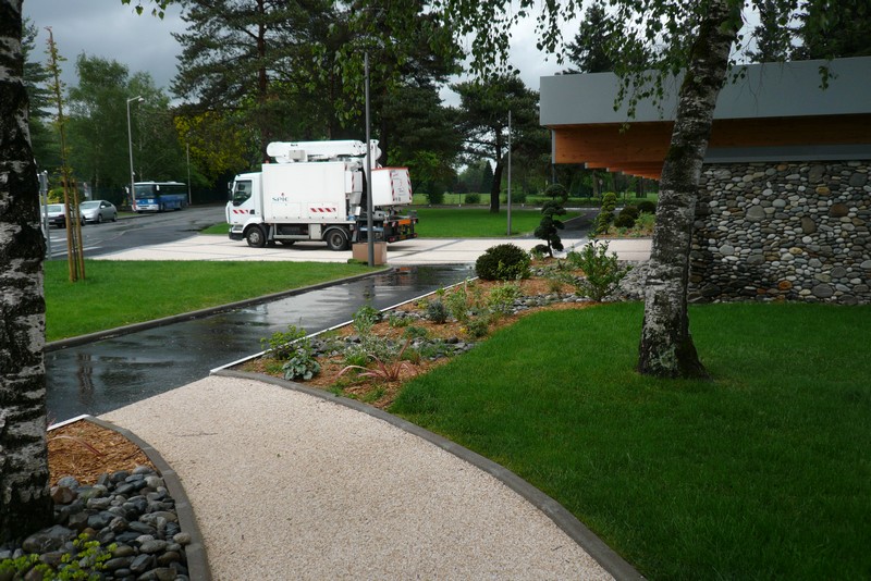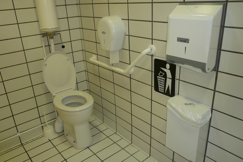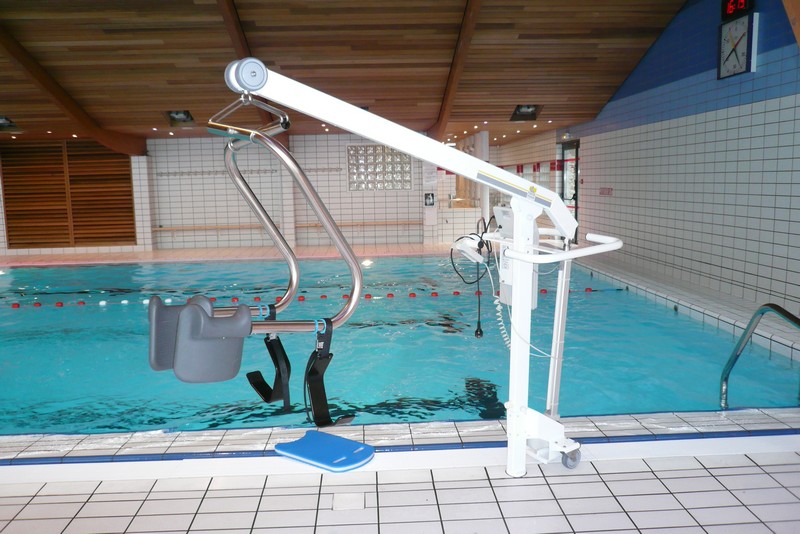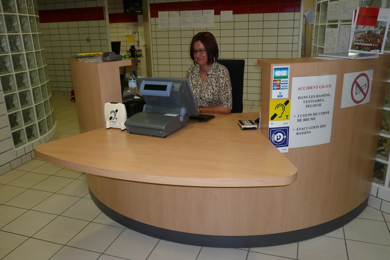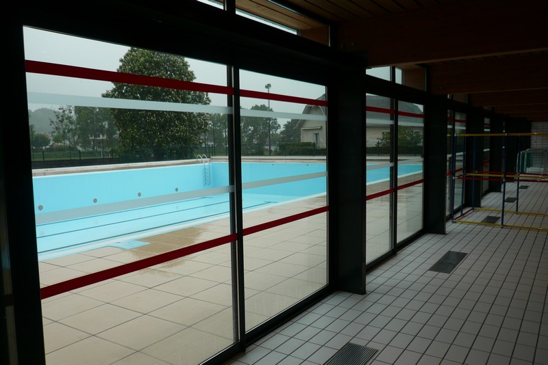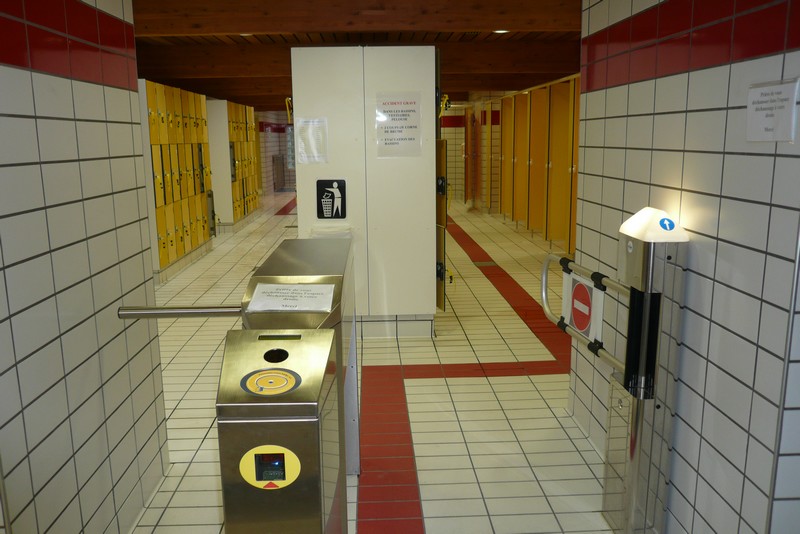 Il s’agit d’une piscine municipale rénovée qui a particulièrement soigné ses aménagements en vue d’être accessible pour tout type de handicap. Cet établissement d’activité nautique est supervisé par une équipe de maîtres nageurs et habitué à recevoir des clients adultes ou enfants en situation de handicap. Toute la chaîne de déplacement est respectée, parking avec double emplacement signalés au sol et vertical, pas de rupture de niveau, largeurs de portes, comptoir à bonne hauteur, douches, toilettes et cabine de déshabillage adaptées, pédiluve avec très faible pente et rambarde, présence d’un élévateur hydraulique pour l’accès au bain. Tous les contrastes de couleur sont respectés, pas de dangerosité à hauteur de visage, toutes les baies vitrés sont munies de deux bandes de d’alerte visuelles à bonne hauteur, un fil d’Ariane est tracé depuis la porte d’entrée jusqu’au bassin pour surligner un cheminement contrasté. Toutes les signalétiques sont homogènes et en caractères contrastés et agrandis, le pourtour du bassin est cerclé de bandes tactiles découlement de trop plein qui préviennent de la proximité de l’eau. Bonne signalétique directionnelle et information sur les horaires et prix visible et claire, boucle magnétique de bureau à l’accueil, flashs d’alerte lumineux dans tous les espaces où la personne peut se retrouver seule. Aucune dangerosité sur la chaîne de déplacement.