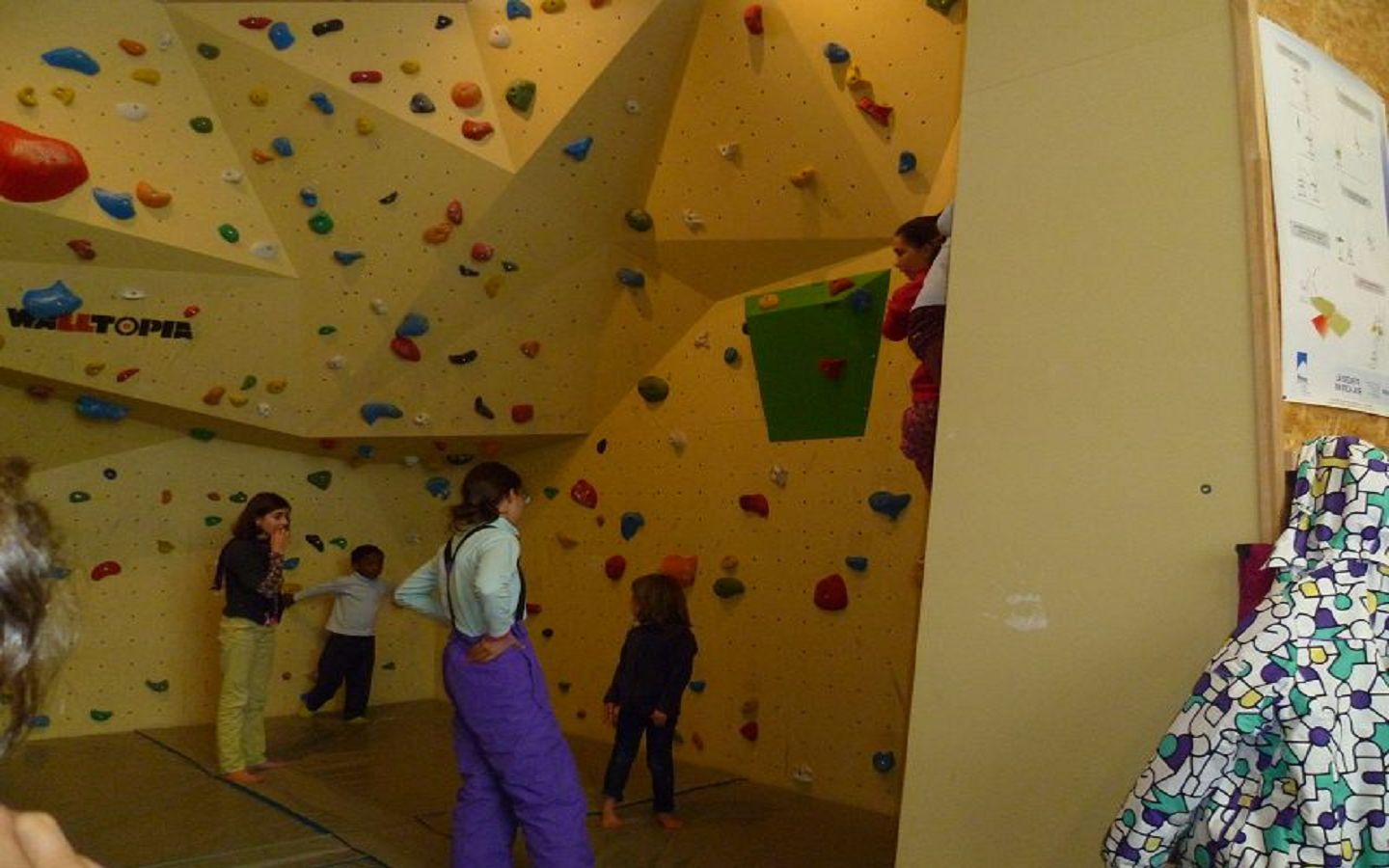 A l'espace montagne de la maison de Gourette. Vous avez la possibilité d'effectuer des parcours selon votre propre imagination, mais nous avons également construit des parcours en fonction de la couleur des prises. Au départ de chaque parcours, vous trouverez une étiquette de couleur qui vous donne une indication de niveau. Vert : très facile, Bleue : facile, Rouge : difficile, Marron : très difficile. La fin d'un bloc s'effectue prise sommitale tenue à deux mains 3 secondes. Soyez extrêmement vigilant de ne pas stationner sur le tapis avec des grimpeurs à proximité.