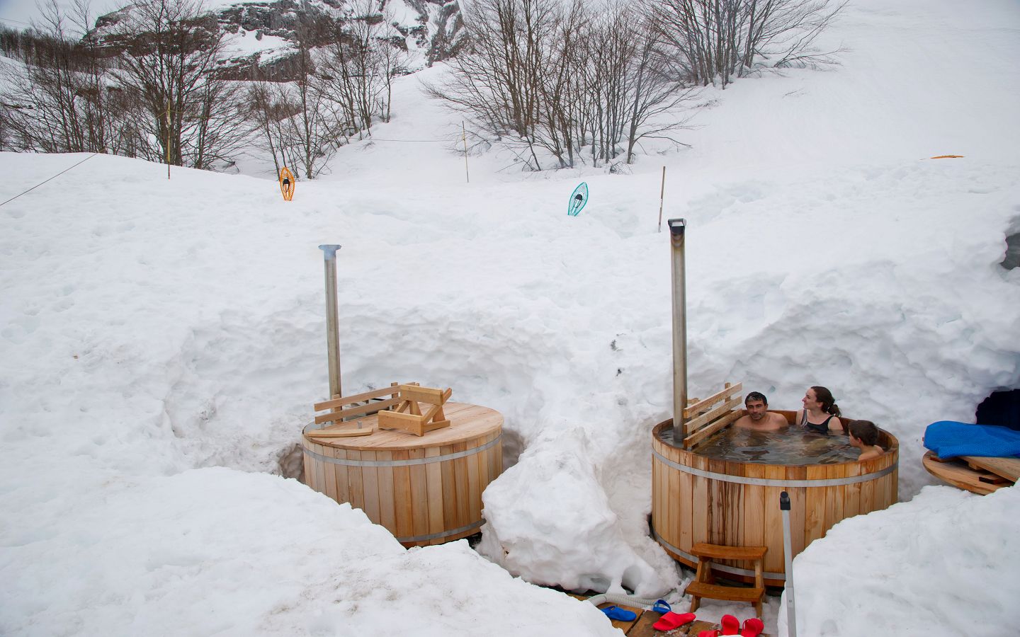 Un bain dans un tonneau en bois !!! Une heure pour soi, moment de détente en pleine nature dans un bain nordique chauffé au feu de bois durant 4 heures avec un poêle immergé, de l’eau à 38°... Un bain chaud, du plaisir, du bien-être, quel que soit le temps, surtout s’il fait froid, sous la pluie, sous la neige. En journée ou en fin d'après-midi.