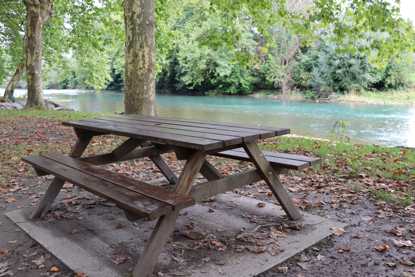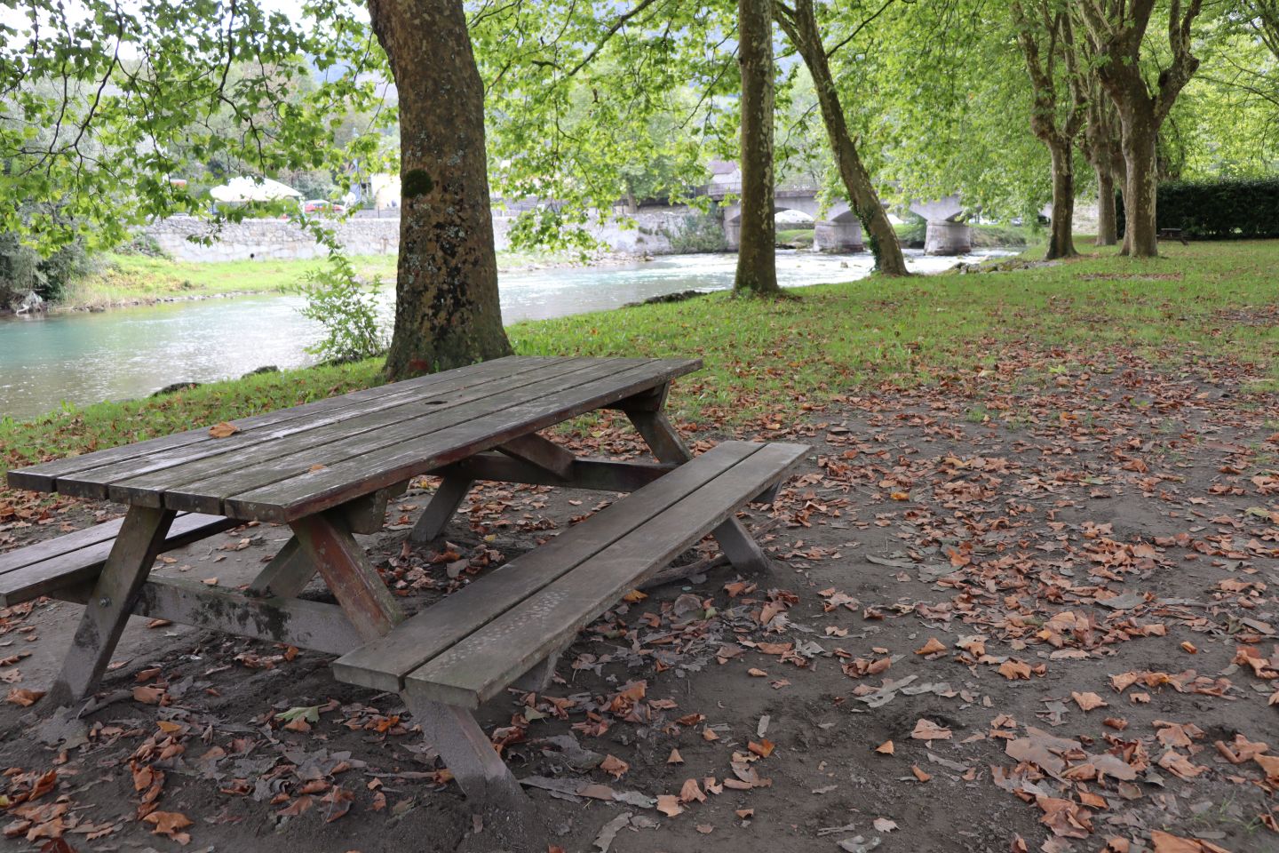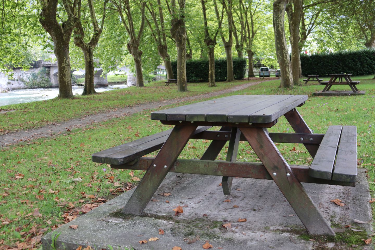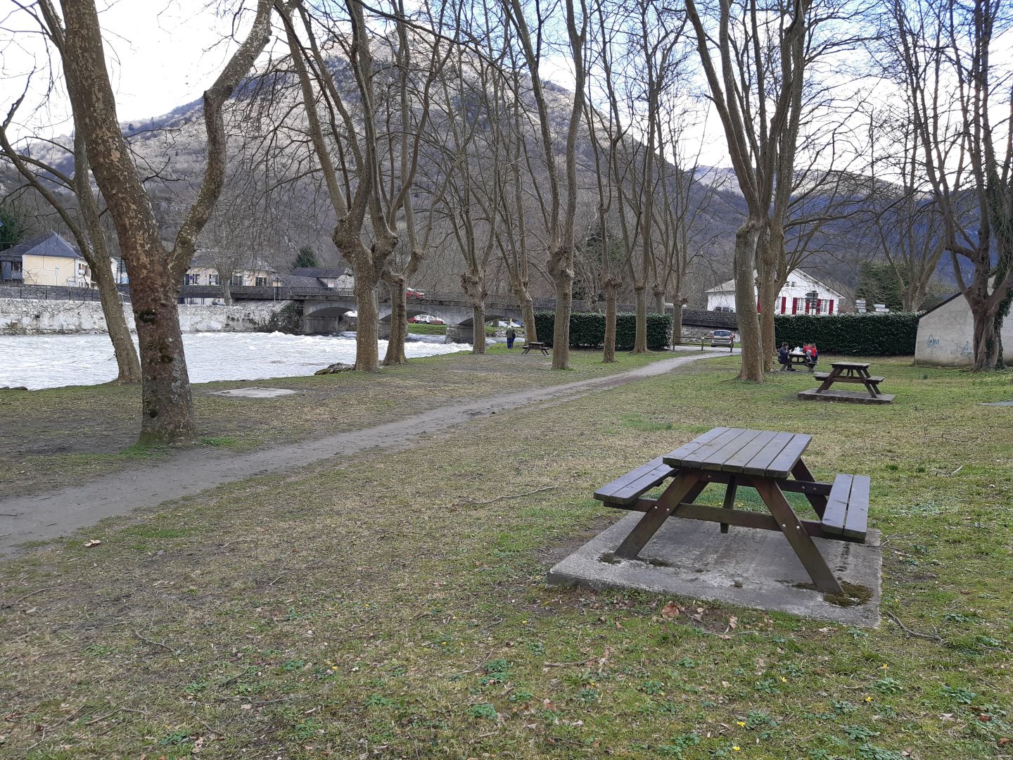 Cette aire de pique-nique propose 5 tables au bord du gave d'ossau et à l'ombre.