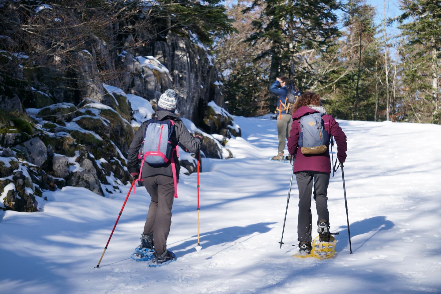 Se munir de raquettes (location à la billetterie de l'espace nordique).