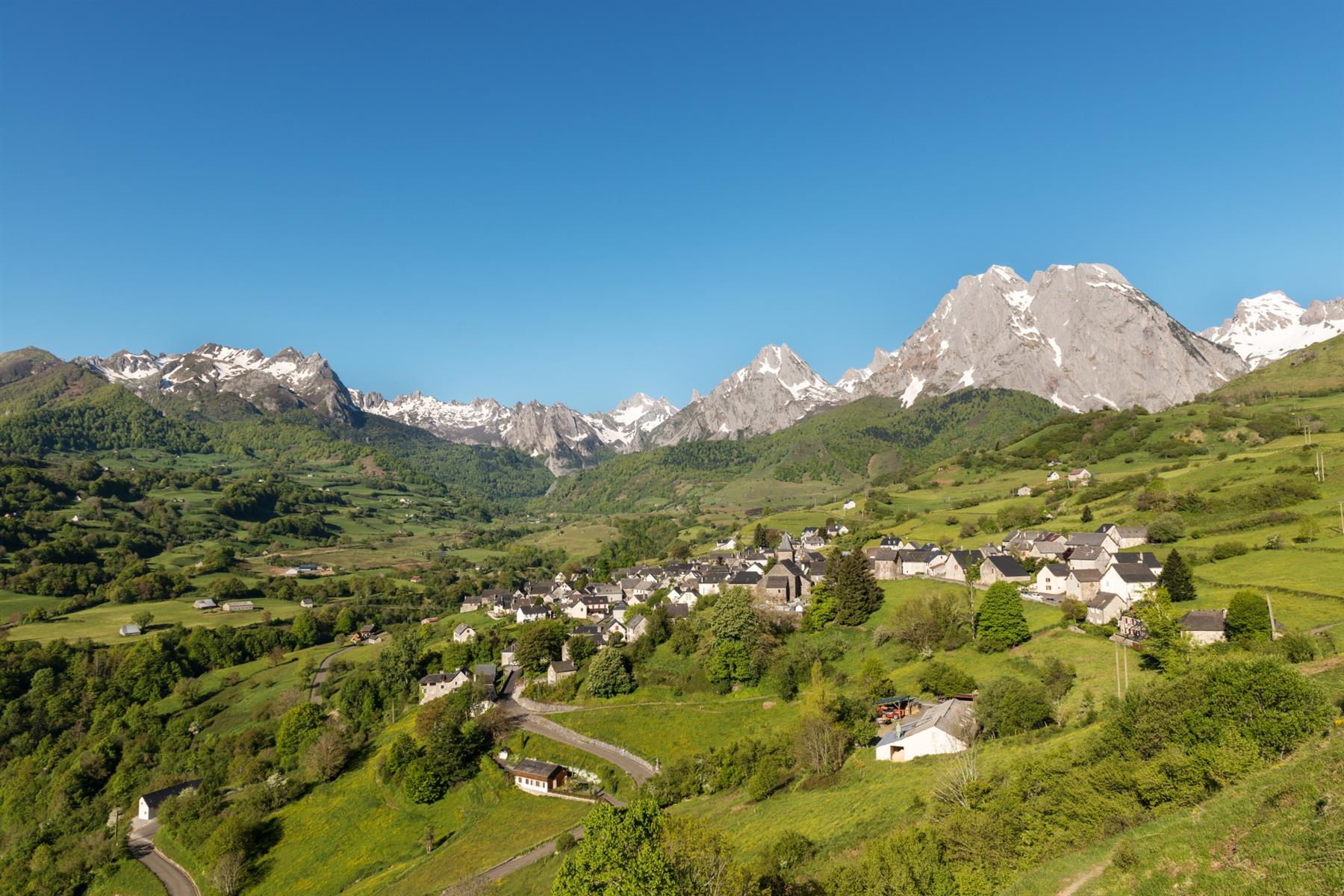 Le village typique Aspois de Lescun juché à 900 mètres d'altitude ouvre ses fenêtres sur la vue époustouflante que propose ce cirque de montagnes.