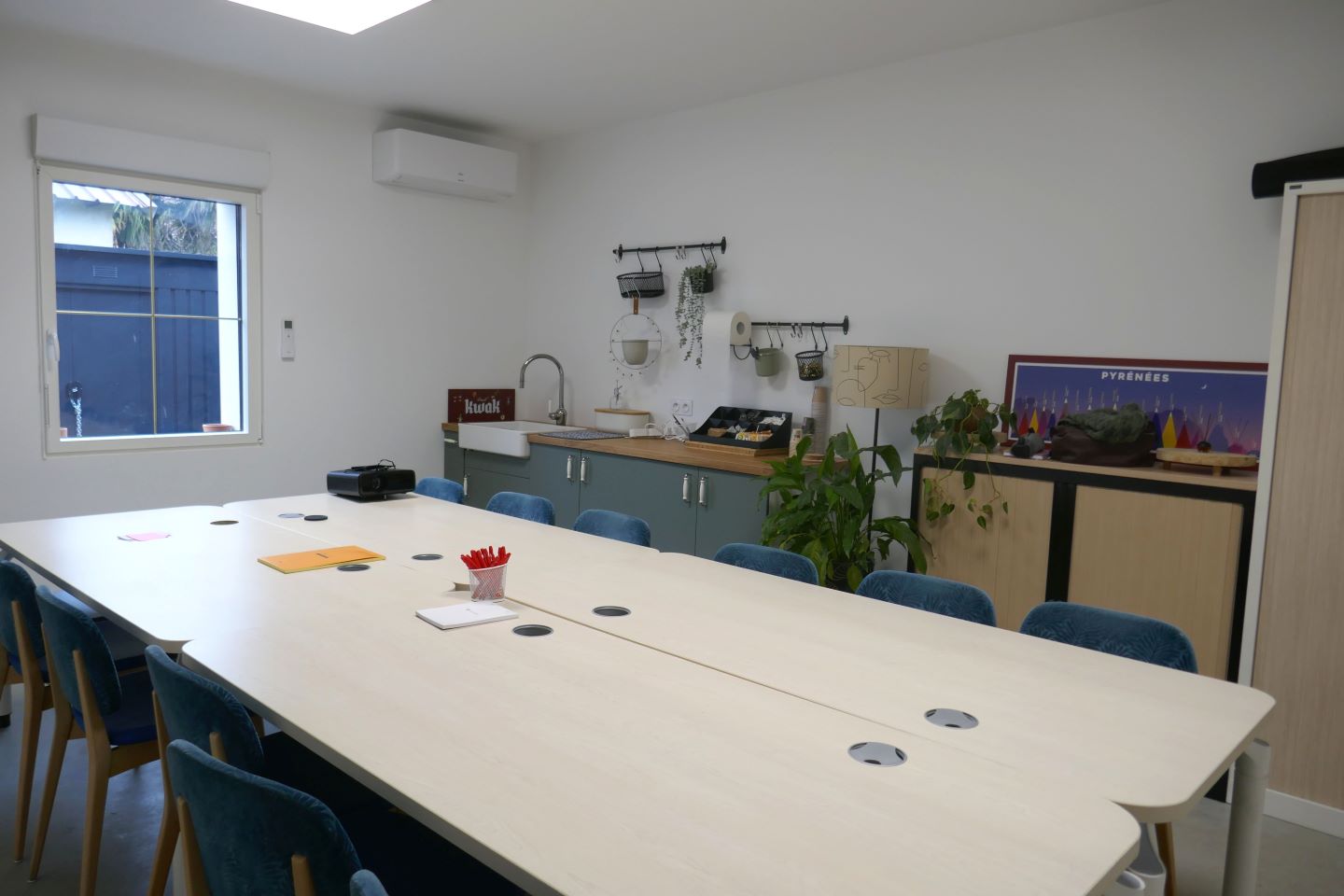 Elle vous propose un espace de réunion cosy avec tout le matériel nécessaire pour vos réunions ou séminaires. Vous pouvez également privatiser la spacieuse salle de restaurant aux couleurs récréatives. Et pour la cohésion de votre groupe, de nombreux jeux sont proposés sur place : boulodrome, billard, babyfoot, fléchettes, flipper, et jeux de société ! L'offre reste modulable selon vos souhaits et sur devis.