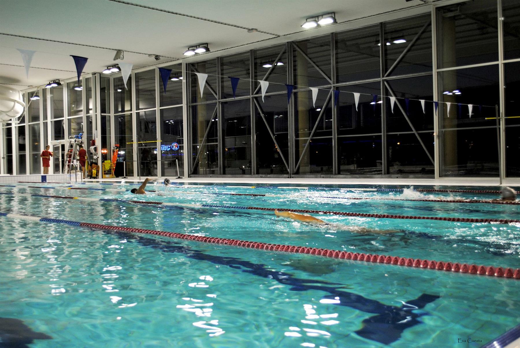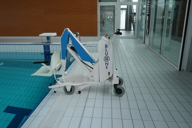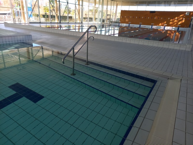 Piscine avec bassins sportifs, ludiques et jeux d’eaux en l'intérieur. A proximité, 4 places de parking adaptées sont réservées. Cheminement plat jusqu'à la porte d'entrée. Accueil accessible.