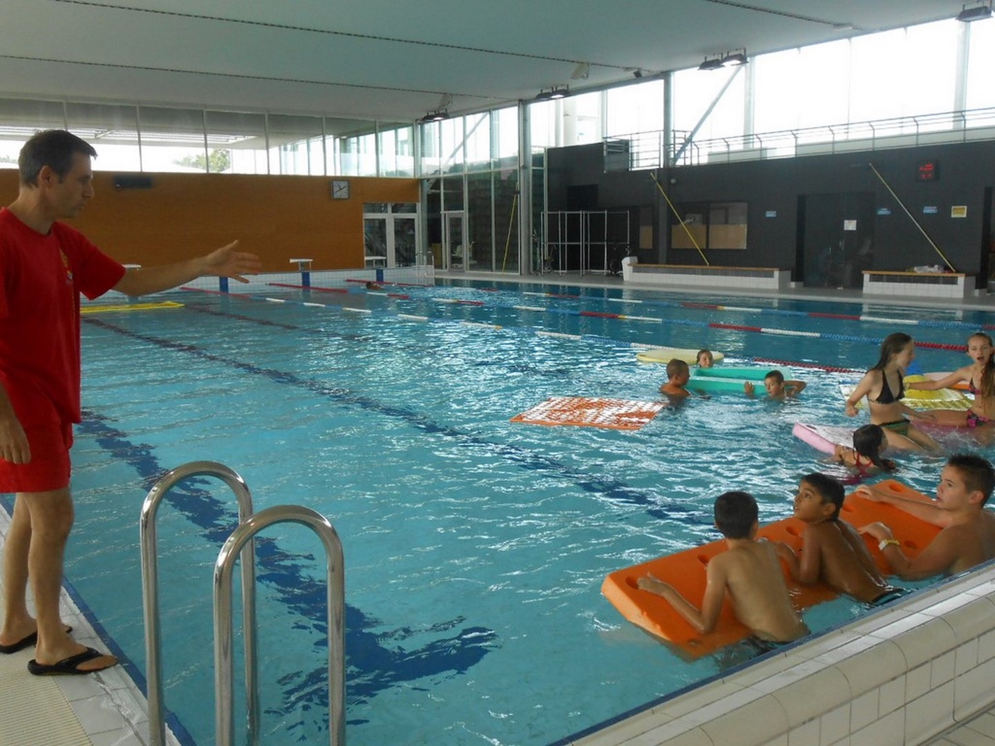 La piscine est un complexe aquatique qui ravira petits et grands. Les sportifs trouveront leur bonheur avec un bassin de 25 m alors que les enfants s'adonneront à la glisse dans le toboggan géant. Pour les tout-petits, une pataugeoire avec table de jeux leur est réservée. Vous voulez plutôt vous détendre ? Alors relaxez-vous dans le bassin ludique chauffé à 31° avec jets massants, bec de cygne et rivière à contre-courant. Un espace bien-être avec saunas, hammam et coin relaxation vous assurera une détente complète. A l'extérieur, bronzette assurée en été sur la terrasse du solarium, une aire de jeux, un pentagliss et des tables de pique-nique sont aussi à votre disposition. Sur toute l'année Activ'gym, Activ'Bike puis l'école de natation.