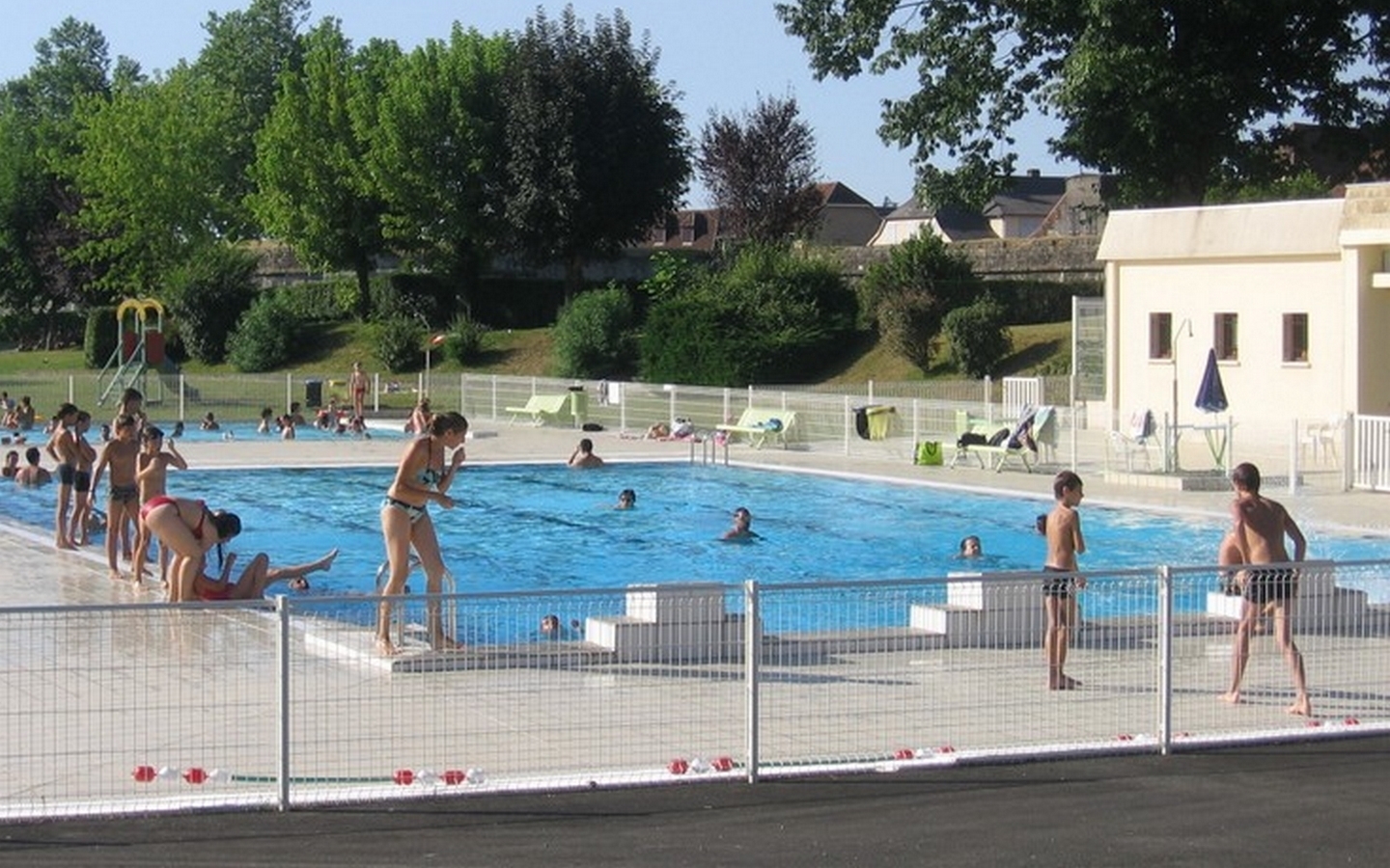 Elle propose un espace ludique extérieur avec un grand bassin de 25 mètres, un bassin d'apprentissage, une pataugeoire (avec son aire de jeux aménagée pour les plus petits) et un beach-volley !