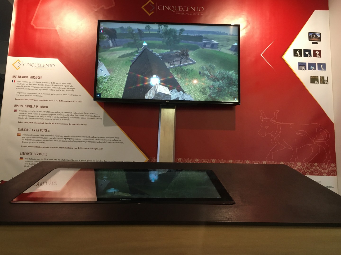 Proposé dans les locaux de l'office de tourisme, ce jeu en 3D permet de se promener un jour de marché dans les rues de la cité bastionnée de Navarrenx. Vous y découvrez tout un ensemble sur la construction de ses remparts au 16ème siècle.