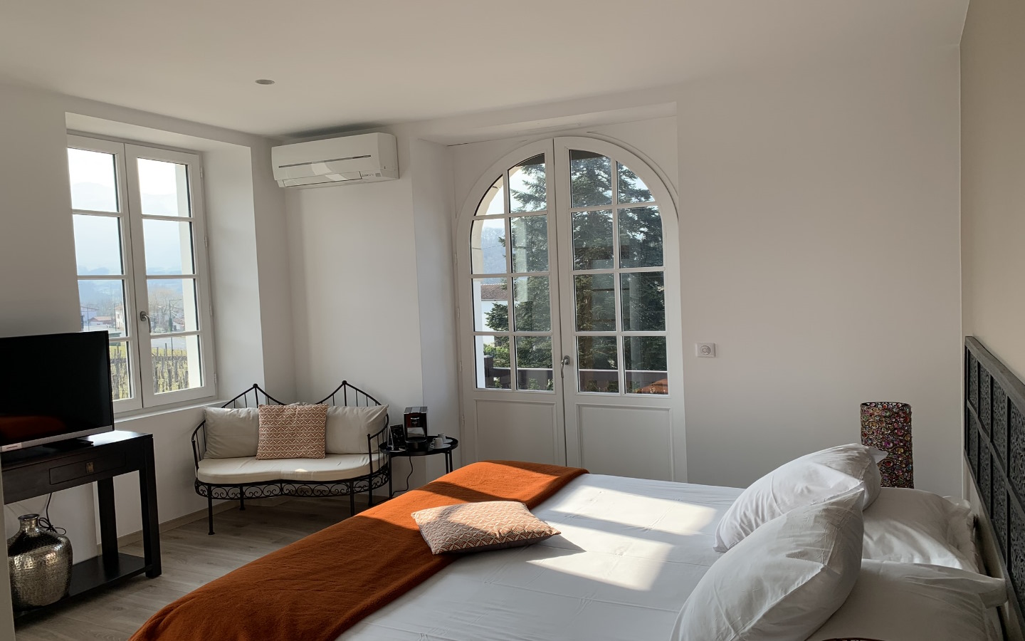 Les Chambres sont spacieuses et lumineuses, avec salle de bain privative. Côté équipement, vous disposerez d’une literie confortable, de la climatisation, de la télévision et du wifi. Vous pourrez profiter d’un bar, d’un salon de thé, d’une table d’hôtes et d'une piscine au sel couverte chauffée d’avril à septembre. Elise et Léo prendront plaisir à vous accueillir en intérieur dans une ambiance feutrée ou sur les terrasses ensoleillées avec vue sur les montagnes basques.