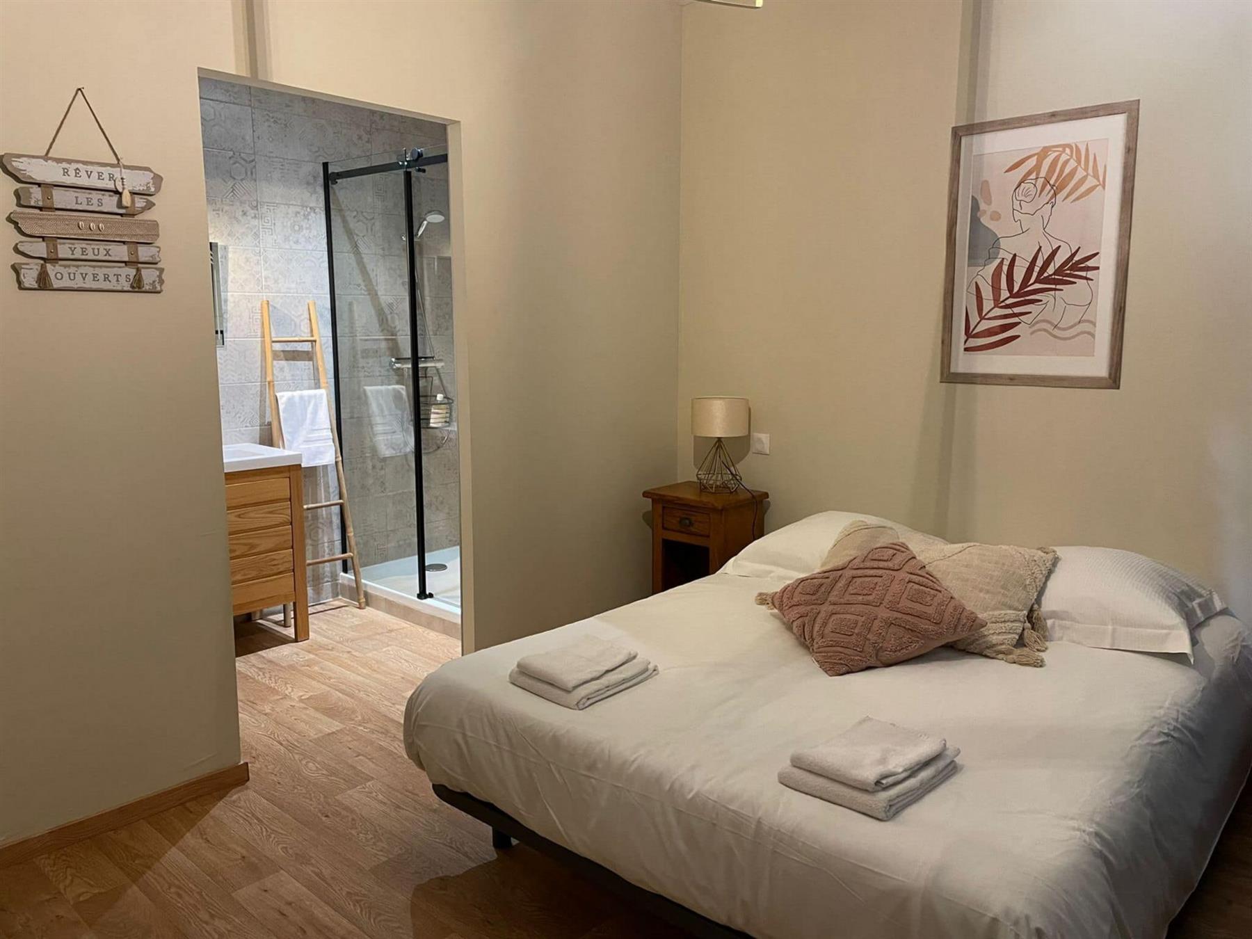 La salle de bains, les toilettes indépendantes et la cuisine sont communes.