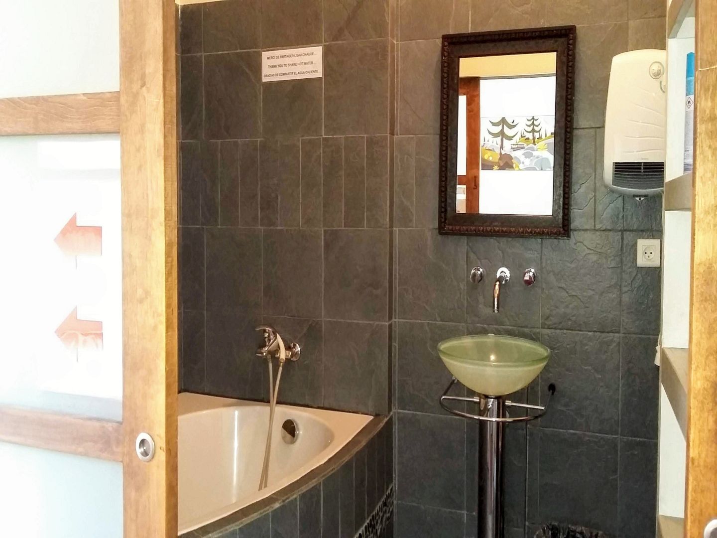 Il s’agit d’un gîte de groupe situé dans le quartier historique de la citadelle classée de type Vauban de la ville de Saint Jean pied de port. Ce gite de groupe positionné en bordure d’une rue touristique pavée et très pentue ne permet pas l’accessibilité pour une clientèle en situation de handicap moteur. Ce meublé est aménagé pour l’accueil de nombreux pèlerins se Saint Jacques de Compostelle. Aucun aménagement adapté pour les clients en situation de handicap moteur sur ce gite. Bonne signalétique sur le gite, boucle magnétique de bureau à l’accueil. Dans les deux chambres situées au premier étage, il y a des détecteurs de fumée couplés avec des flashs d’alerte lumineux. Wifi sur la structure. Peu de contrastes de couleur dans l’ensemble du gîte, les nez de marche, les contremarches ne sont pas contrastés dans l’escalier. Il n’y a pas de bandes podotactiles sur les paliers. Au second étage une chambre sous toit présente une poutre basse qui peut représenter une dangerosité pour un client mal ou non voyant. Aucune dangerosité sur la chaîne de déplacement, signalétique directionnelle en caractères agrandis et pictogrammes sur la structure, accueil chaleureux.