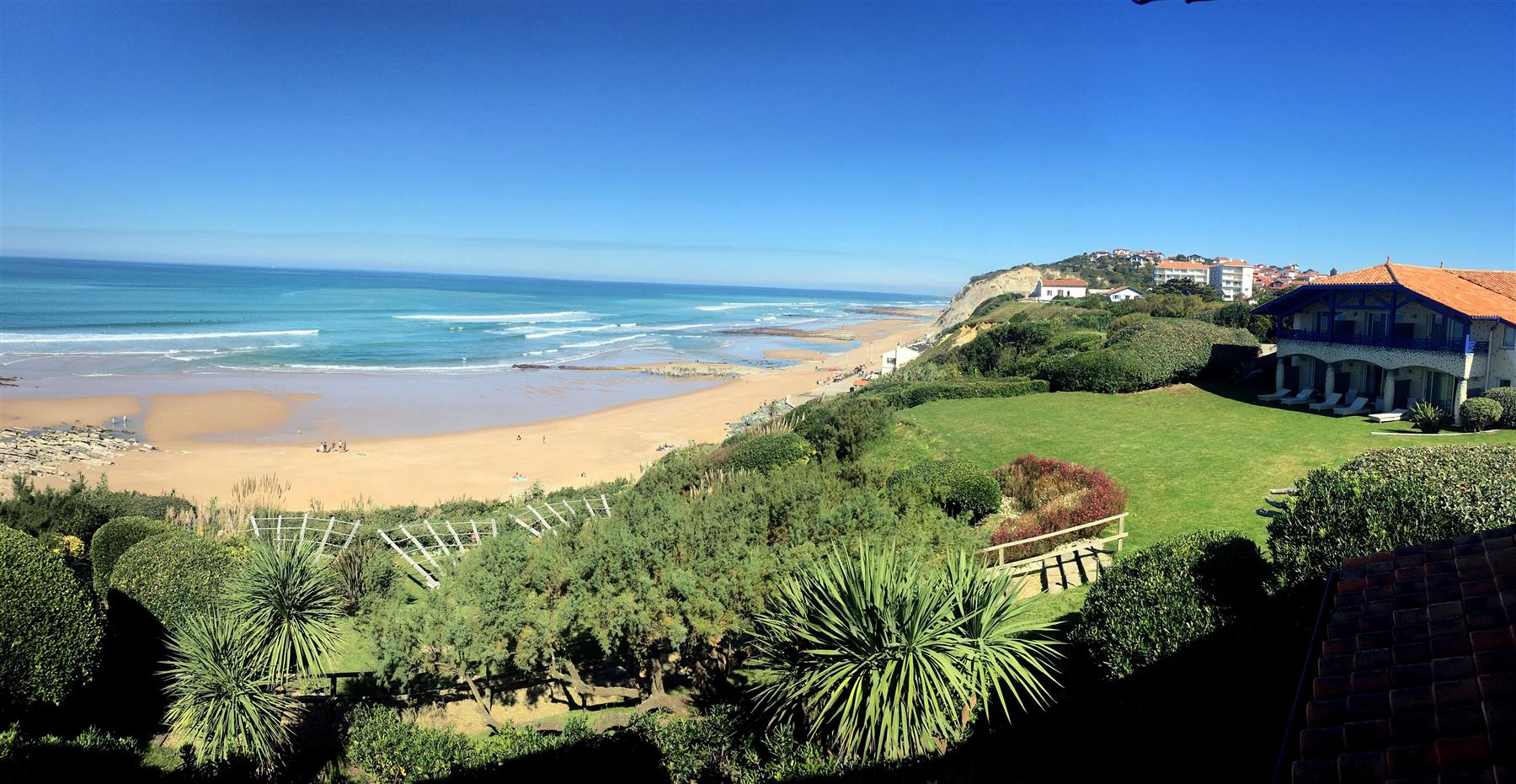 Posée sur une falaise verdoyante, à seulement 6 kilomètres de Biarritz ou de Saint Jean de Luz, la Villa l’Arche domine les plages de sable fin de Bidart s’étendant sur plus de 5 km. Elle est légèrement à l’écart du village de Bidart offrant à ses hôtes calme et sérénité.