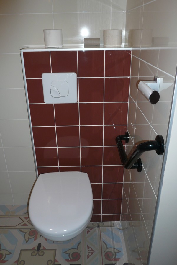 Il s’agit d’un hôtel restaurant de tourisme situé dans le centre-ville historique de la commune touristique de Saint Jean pied de port et comprenant 14 chambres dont 1 adaptée pour les handicaps auditif, mental, visuel et moteur. Le petit déjeuner peut être servi en chambre ou dans la salle des petit déjeuner et du restaurant prévue pour 60 couverts. L’hôtel ne possède pas de parking privé mais deux places de parking adaptées sont situées sur l’espace public à proximité de l’entrée. Le comptoir d’accueil’ est évidé à 0,70 cm du sol. La salle des petits déjeuners offre des tables accessibles. La chambre possède une aire de rotation et offre un transfert possible des deux côtés du lit. La salle d’eau à l’Italienne est équipée avec des WC suspendus allongés et adaptés. La douche a un large siège rabattable ainsi qu’une barre horizontale de transfert et une barre de maintien verticale. La salle d’eau possède un lavabo avec mitigeur et miroir à bonne hauteur. Le comptoir d’accueil ainsi que l’ascenseur sont équipés d’une boucle magnétique de bureau, La chambre, la salle d’eau, les toilettes du rez de chaussée, de la salle des petits déjeuners ainsi que du restaurant sont équipés de flashs d’alerte lumineux reliés à l’alarme sonore. Le téléphone de la chambre est adapté avec voyant lumineux. Tous les écrans de télévision de l’hôtel possèdent une lecture télétexte, le wifi est installé sur tout le site. La signalétique directionnelle et d’information, la règlementation ainsi que les numéros d’urgence son bien visibles sur toute la structure. Il n’y a aucune dangerosité à hauteur de visage dans la chaîne de déplacement de l’hôtel, cette chaîne est contrastée en couleur avec le mobilier, les prises électriques et les interrupteurs. La signalétique d’information est en caractères agrandis, ainsi que la signalétique directionnelle. Le téléphone de la chambre est équipé de touches avec gros chiffres et ergot sur le 5. Aucune dangerosité sur l’hôtel,