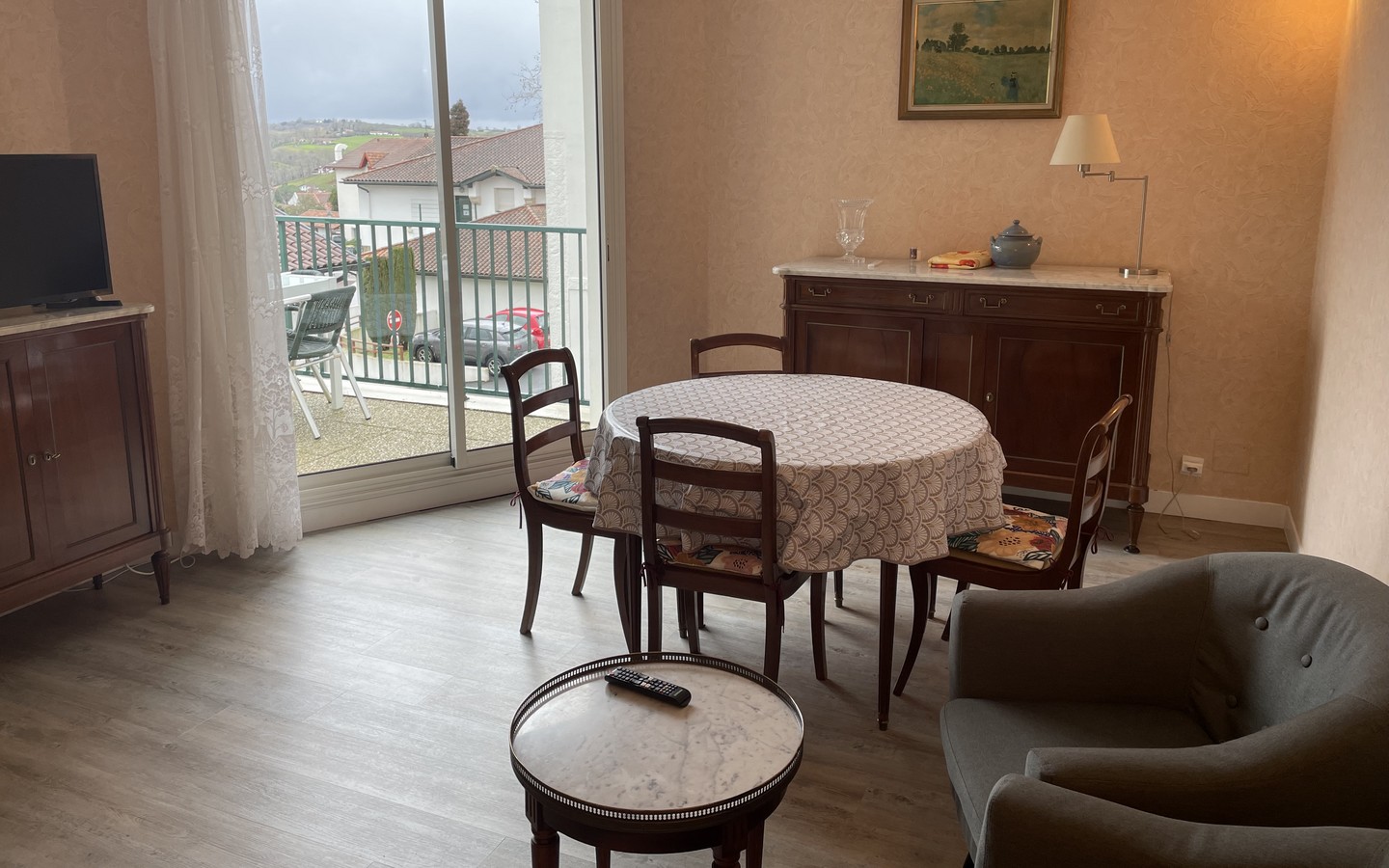 Appartement de 60 m² situé au 1er étage d'une résidence avec ascenseur au centre ville de la ville de Cambo les bains à deux pas des commerces et de la navette allant vers les thermes. La cuisine est indépendante et entièrement équipée avec plaques électriques, four traditionnel, lave-vaisselle et réfrigérateur-top avec compartiment congélation. Le séjour et salon doté d'un canapé, 2 fauteuils et télévision donne sur la terrasse attenante. Dans la première chambre, il y a un lit en 140, dans la seconde, 2 lits gigognes en 90. La salle d'eau est équipée d'une cabine de douche, lave-linge et WC.