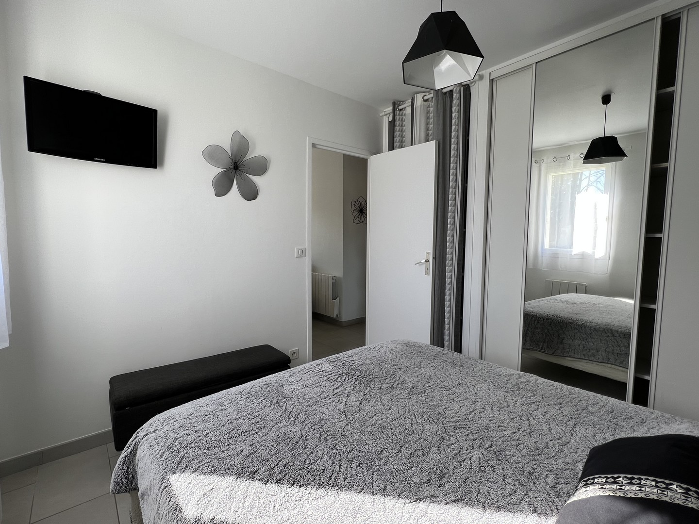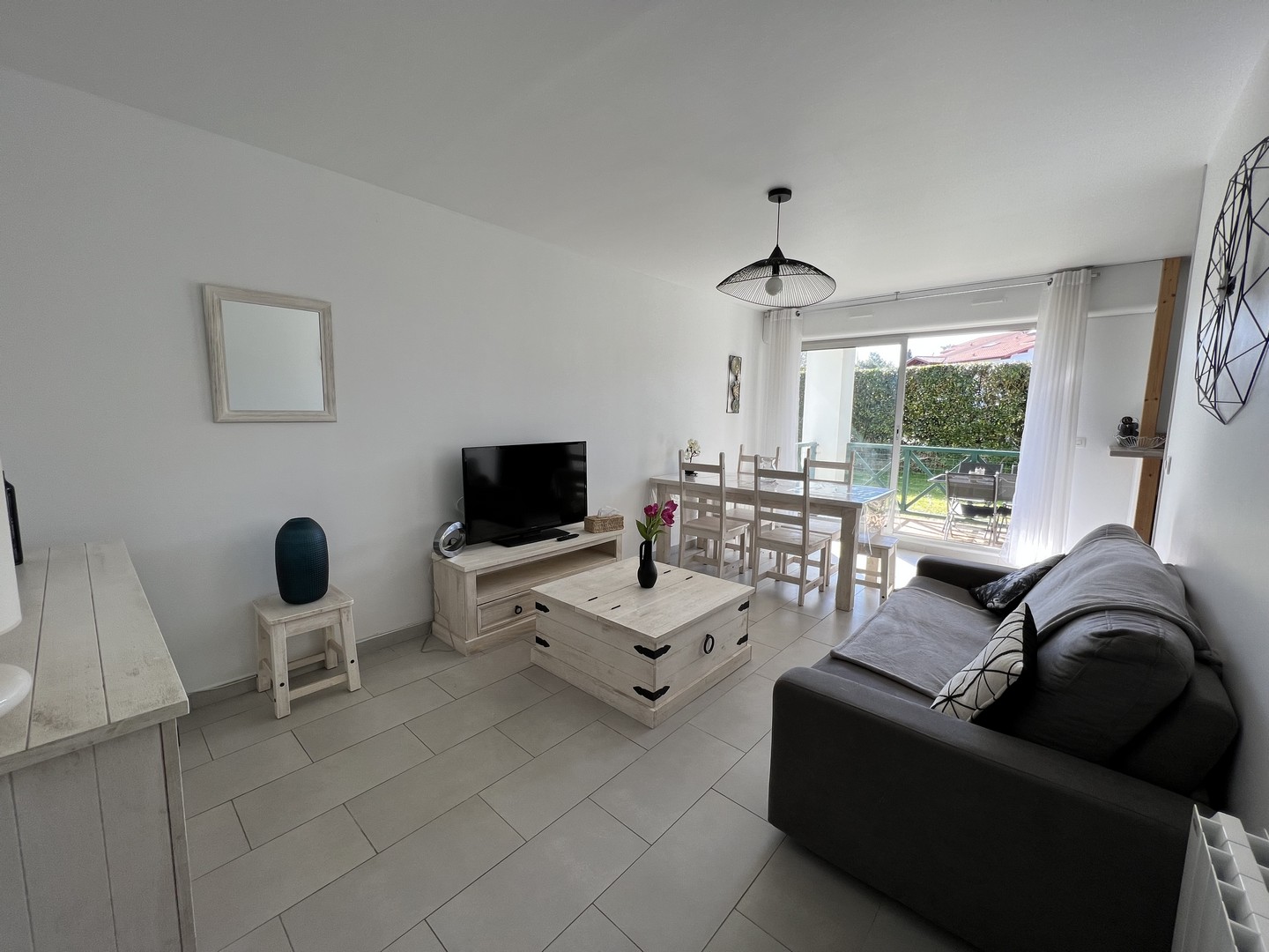 Joli appartement T2 clair et confortable, au RDC d'une petite résidence au calme, comprenant 1 chambre avec lit en 160, 1 salon salle à manger avec une cuisine ouverte totalement équipée, salle d'eau avec douche, vasque et lave-linge, WC indépendant, belle terrasse équipée plein sud sur verdure sans vis à vis. Place de parking privative. Commerces à proximité.