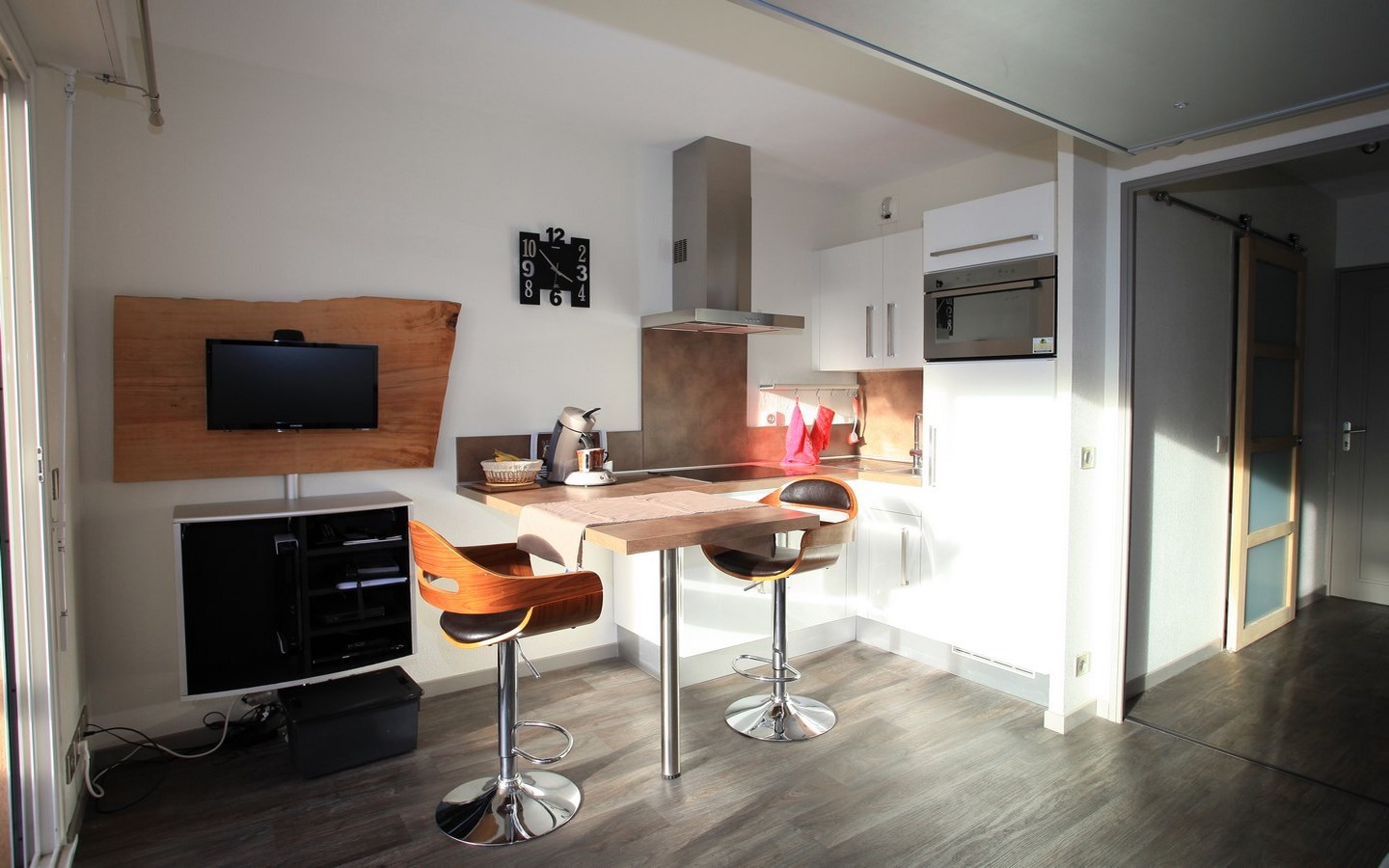 Studio de 20 m² situé au 1er étage d'une résidence sans ascenseur dans le quartier pittoresque du Bas Cambo. Kitchenette ouverte sur l'espace repas et le coin couchage avec 1 lit en 140. Salle d'eau avec baignoire et wc. Station thermale réputée, CAMBO LES BAINS a une situation privilégiée: à 25 km à peine des vagues de l’Atlantique et ses stations balnéaires : Anglet, Biarritz, et St Jean de Luz, mais aussi tout prés de Saint Jean Pied de Port et à 5 km d’Espelette.