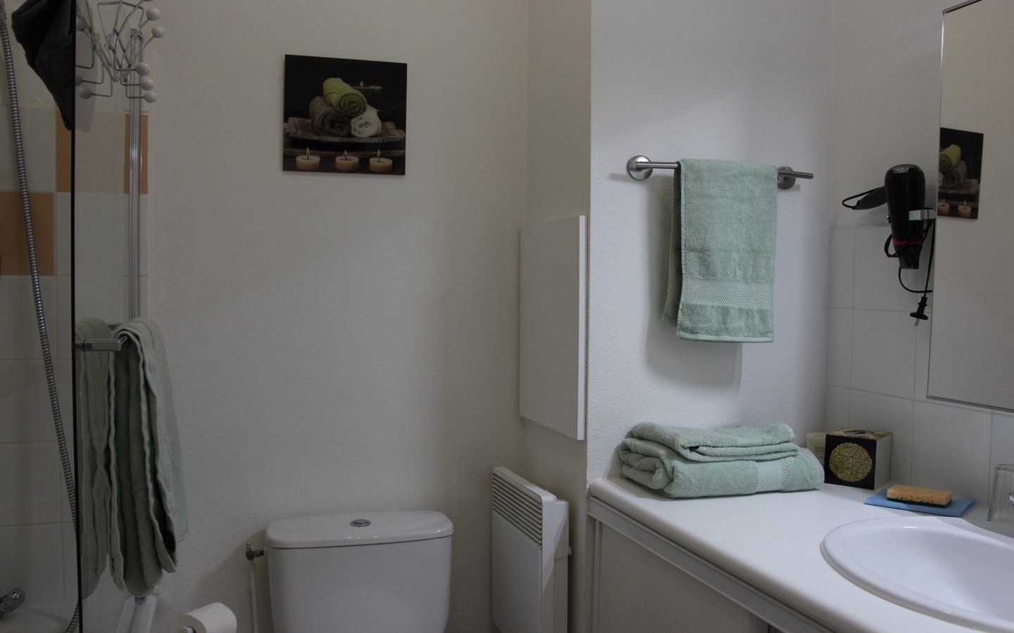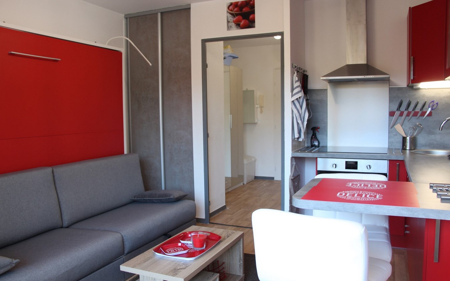 Studio de 20 m² situé au 1er étage d'une résidence. Kitchenette équipée de plaques de cuisson induction, four, micro-ondes, réfrigérateur avec compartiment congélation ouverte sur le coin nuit avec lit escamotable en 160, télévision écran plat. Salle de bains avec baignoire, lavabo et sèche cheveux et WC.Les draps et linge de toilettes sont fournis par le propriétaire. Accès internet, téléphone et équipements bébé. Combiné lave-linge / sèche linge.