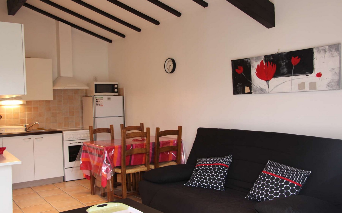 Maisonnette de 30 m² comprenant un coin cuisine avec micro-ondes, four, plaques de cuisson, réfrigérateur avec compartiment congélation. La partie séjour / salon dispose d'une table, chaises, canapé et téléviseur écran plat. Salle d'eau avec lavabo, douche et lave-linge. La chambre est dotée d'un lit en 140. Les animaux sont les bienvenus. En extérieur: terrasse, parking.