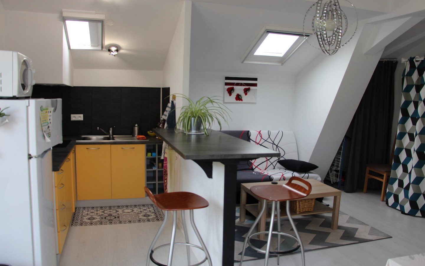 Studio de 30 m² situé au 2ème étage d'une maison de ville proche du centre ville de Cambo les Bains. Coin cuisine avec comptoir de séparation équipée d'un micro-ondes multifonctions et réfrigérateur avec congélateur. Le coin salon, est doté d'un canapé et télévision et le coin couchage d'un lit en 140. La salle d'eau dispose d'une baignoire et d'un combiné lave-linge / sèche linge. Les wc sont dans les sanitaires. Le propriétaire fournit les draps et le linge et met à votre disposition un accès wifi. En extérieur : Parking. Les animaux sont admis sous conditions. Station thermale réputée, CAMBO LES BAINS a une situation privilégiée: à 25 km à peine des vagues de l’Atlantique et ses stations balnéaires : Anglet, Biarritz, et St Jean de Luz, mais aussi tout près de Saint Jean Pied de Port et à 5 km d’Espelette.