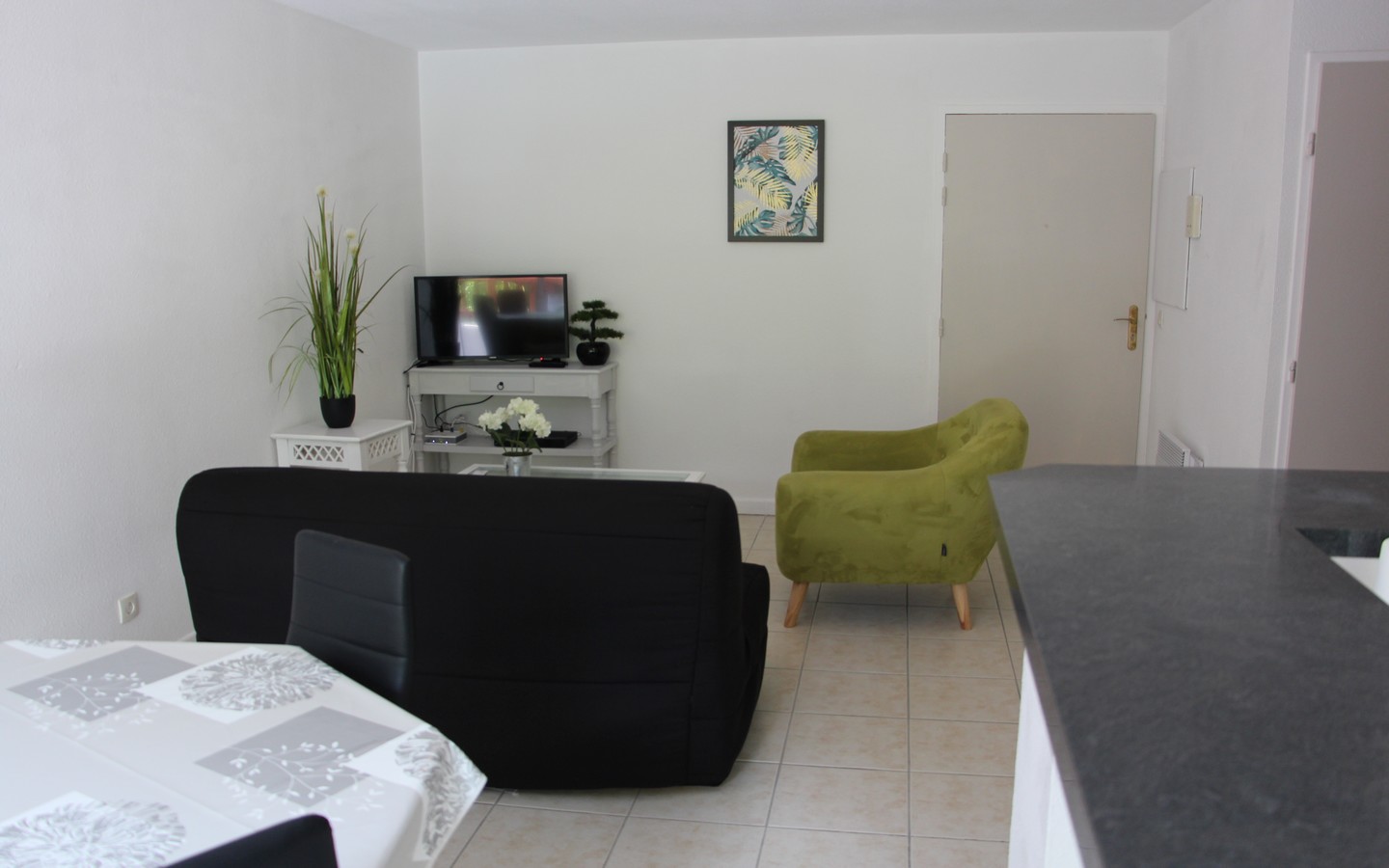 Appartement situé au 1er étage d'une résidence de standing à environ 1.5 km du centre-ville et à 1.5 km des thermes. La cuisine équipée est ouverte sur la partie séjour / salon avec canapé convertible, un fauteuil et télévision. La chambre est dotée d'un lit en 140. La salle d'eau est équipée d'une douche et vasque. Les wc sont indépendants.