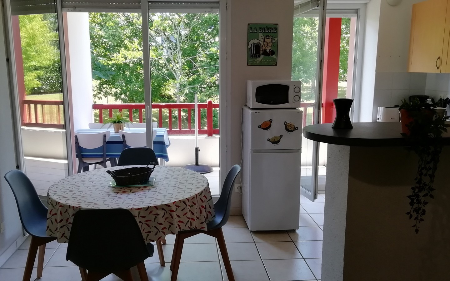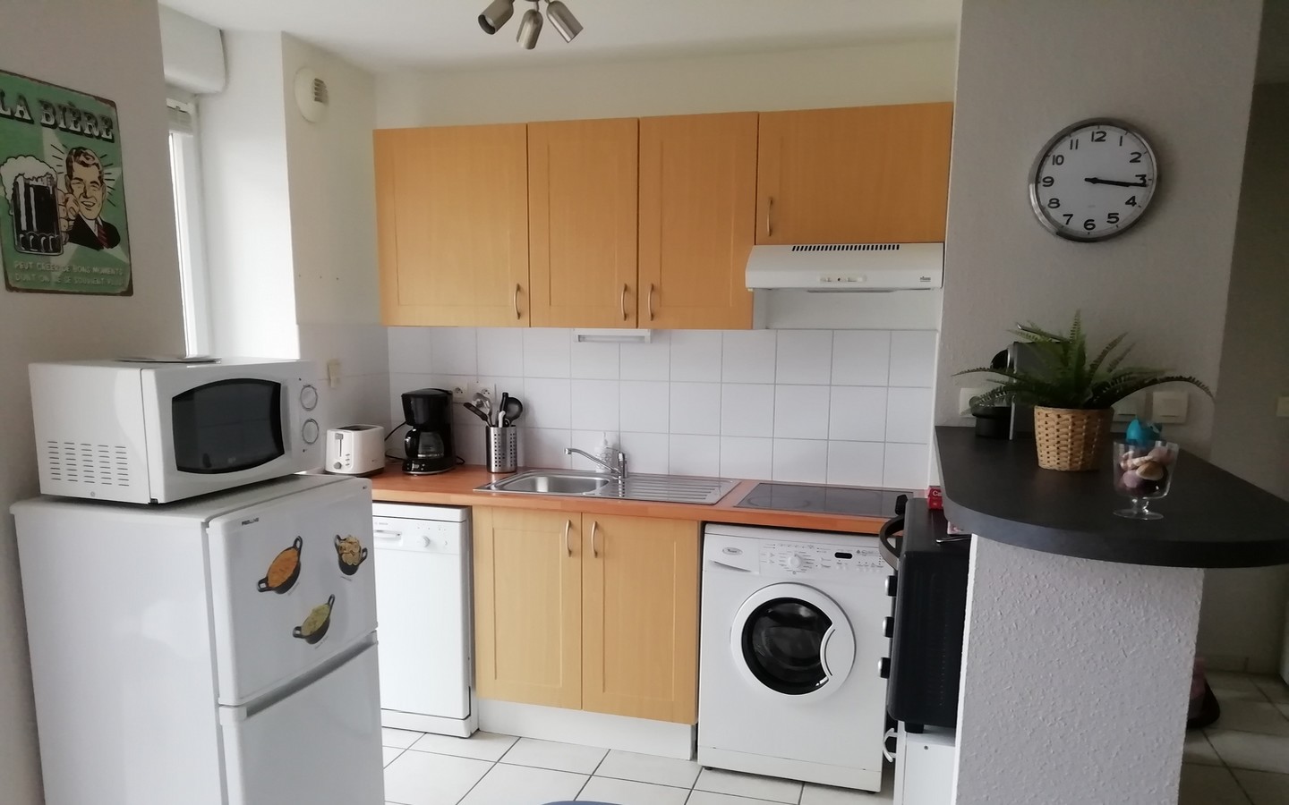 Appartement classé d’un niveau de 3* de 39 m2, situé au 1er étage d'une résidence de standing avec piscine à 1.6 km du centre-ville. La cuisine américaine intégrée donne sur le coin séjour et salon équipé d'une table, de 4 chaises, d'un téléviseur écran plat, d'un canapé convertible pour 1 personne et d'une table basse. La chambre dispose d'un 1 lit en 140. Salle de bains avec baignoire. Les wc sont dans les sanitaires.