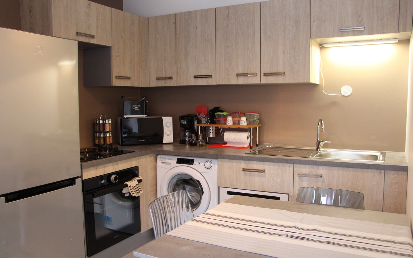 Appartement de 41 m². Coin cuisine avec four, réfrigérateur avec partie congélation et lave-vaisselle. Séjour / salon avec un canapé convertible et téléviseur. Chambre avec 1 lit en 160. Salle d'eau, les wc sont dans les sanitaires.