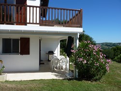 Location d'un appartement de 34m² situé dans une maison. Le + de cet appartement est sa jolie vue panoramique sur la campagne Basque. Notre maison se trouve à 2km des commerces d'Hasparren, 10km des thermes de Cambo les Bains, 20km de la frontière Espagnole et 30km des plages de la côte Basque (Biarritz, Bayonne, Anglet...)Cet appartement est situé au rez de chaussée de la maison, avec une entrée indépendante. Séjour/salon avec 1 canapé convertible BZ en 140 et espace cuisine avec congélateur et lave-vaisselle, 1 chambre avec 1 lit en 140, salle d'eau, wc. Télévision, WIFI, lave-linge, terrasse couverte avec salon de jardin, barbecue, parking privé.