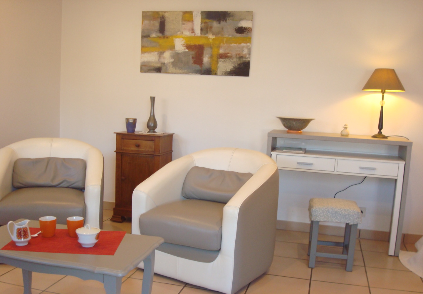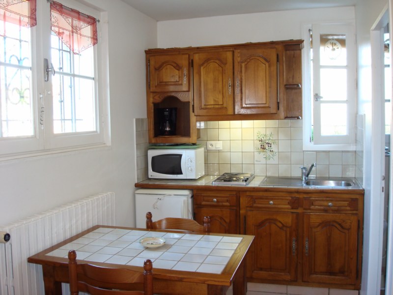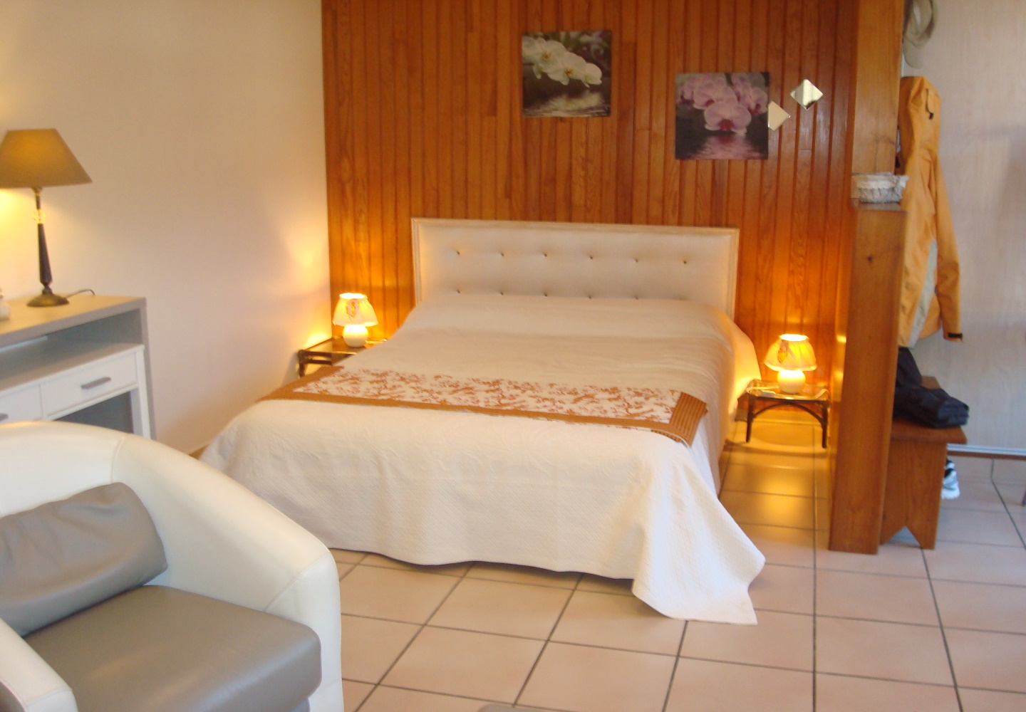 Studio indépendant, 30 m2, dans villa à la campagne : coin cuisine équipé avec Micro-ondes, lave-linge commun, réfrigérateur, espace salon, TV, côté nuit : lit 2 personnes. Salle d'eau cabine douche - lavabo - wc dans sanitaires.
