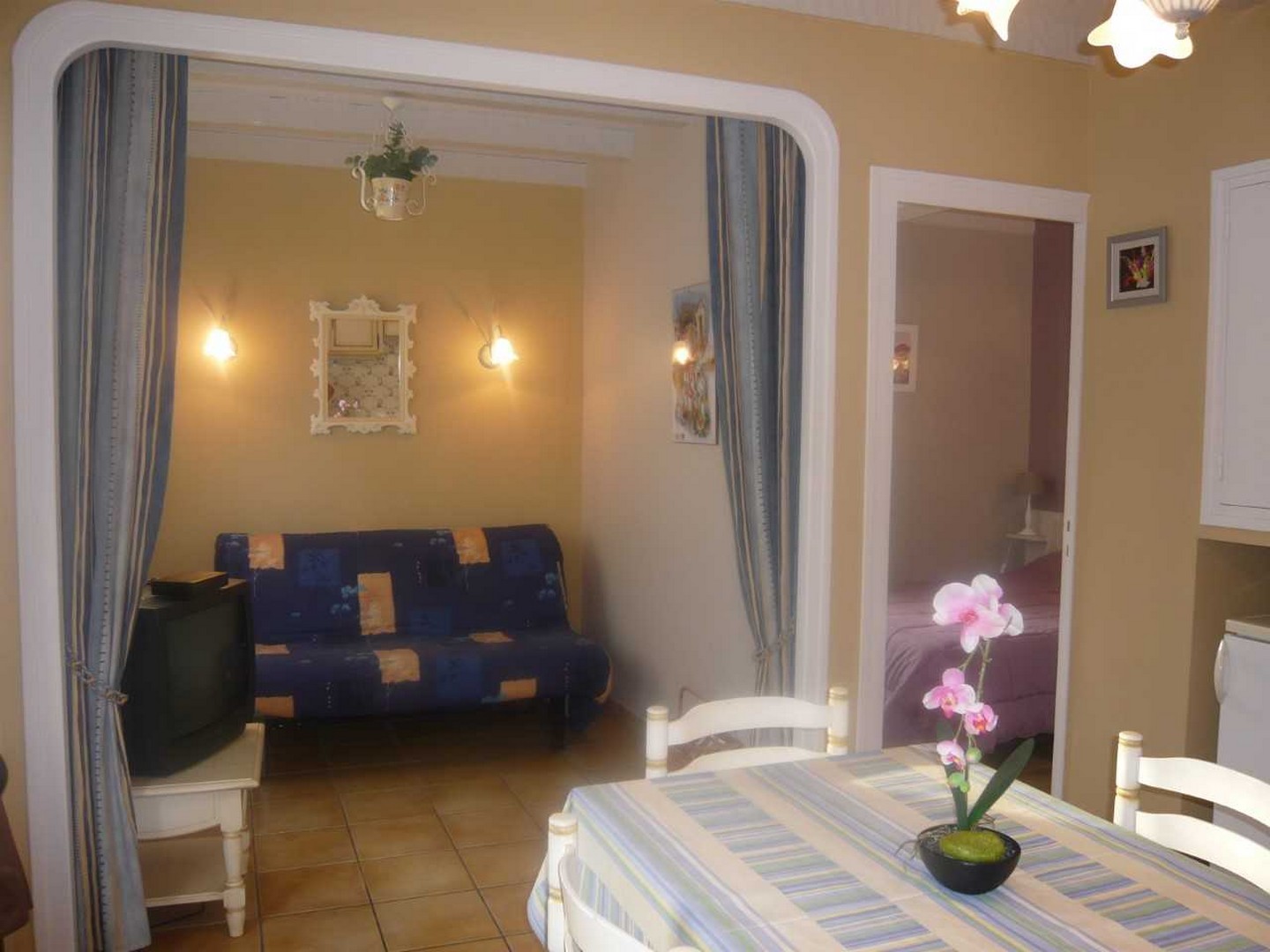 Elle est équipée d'une cuisine avec espace salon et d'une chambre. Le jardin à l'extérieur dispose d'un barbecue et d'un salon de jardin.