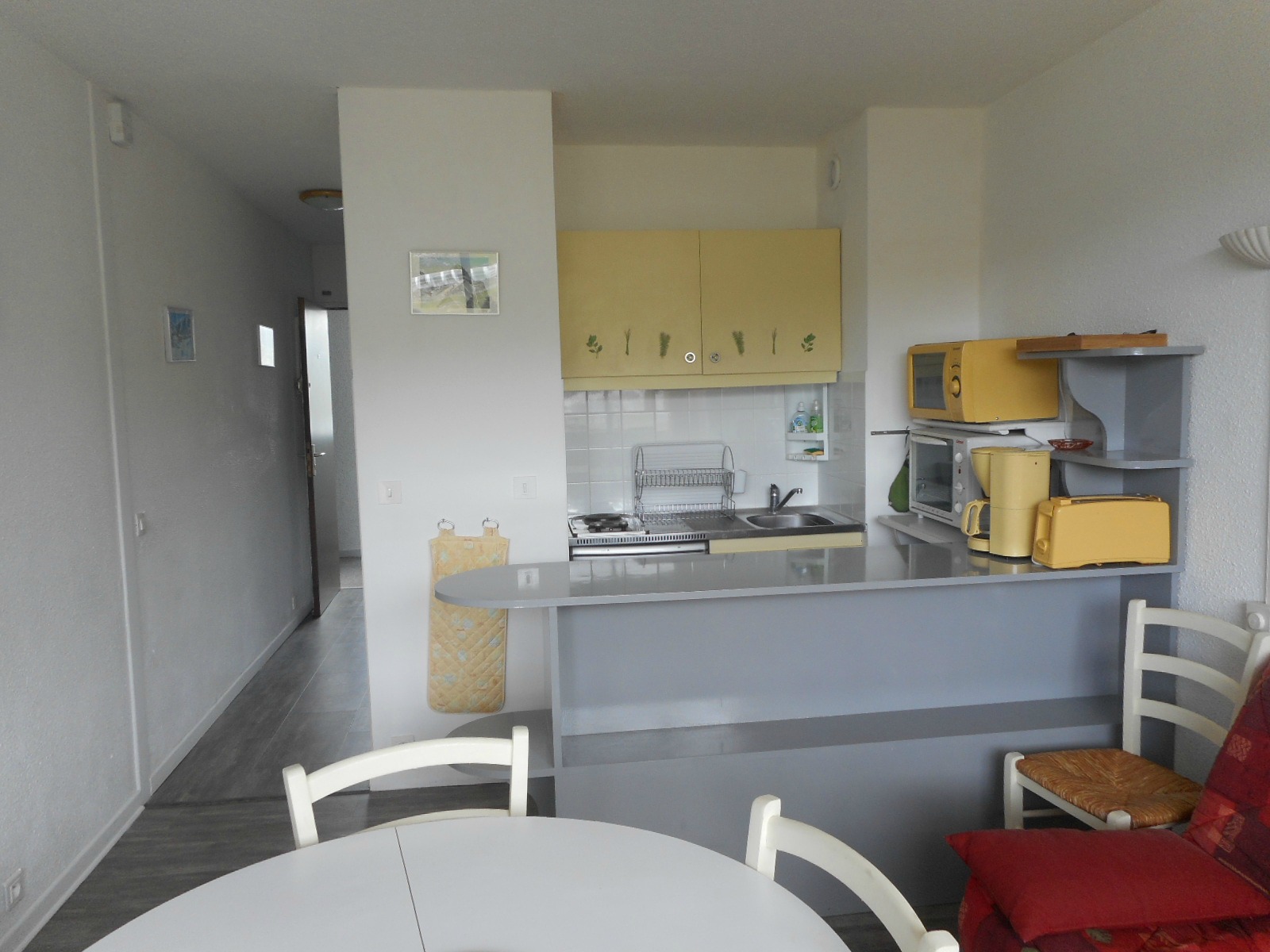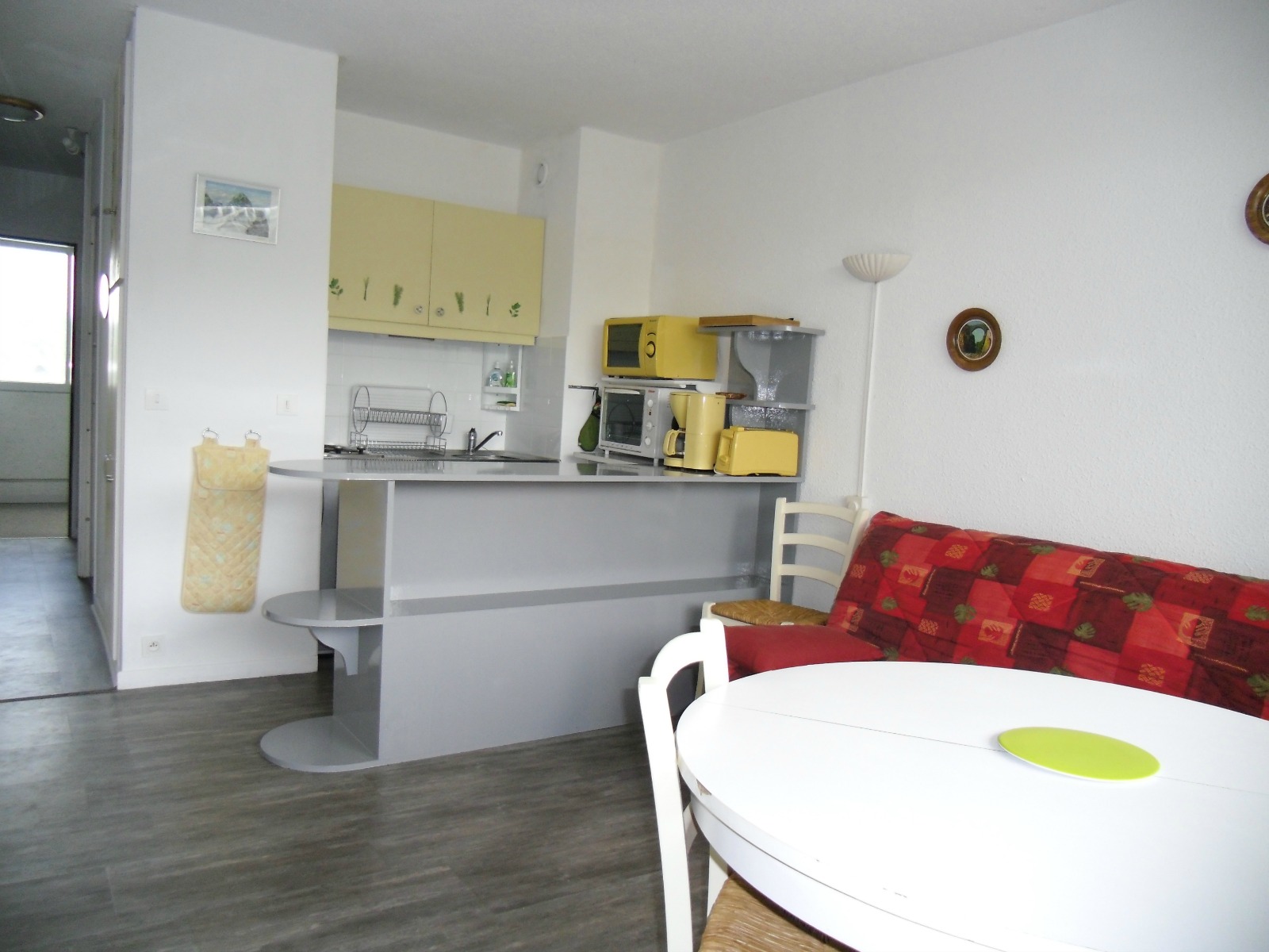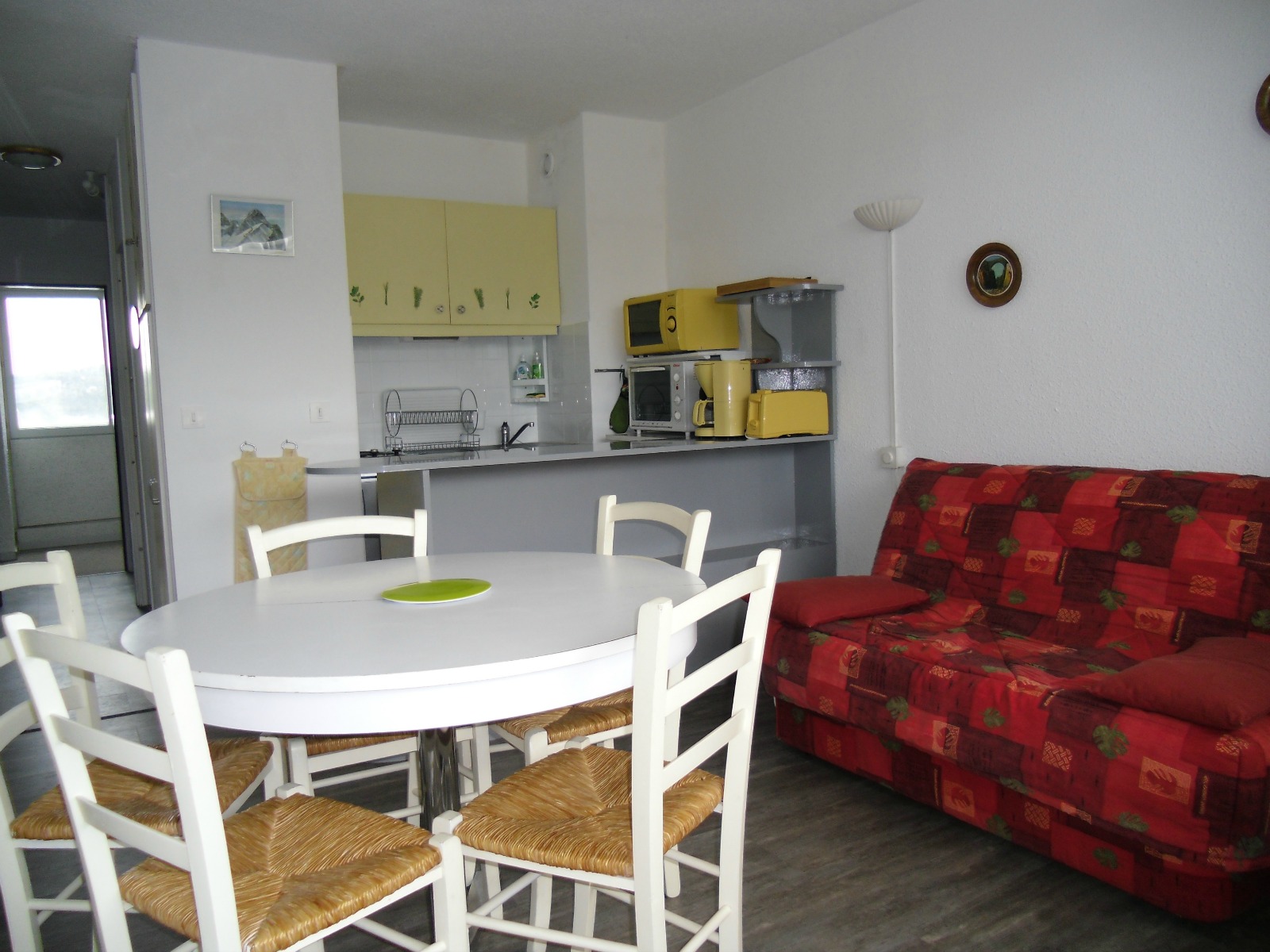 En entrant dans le studio, vous trouverez une alcôve avec trois lits superposés, une salle d'eau avec douche, lavabo et WC. Les deux autres couchages sont situés dans le salon/séjour avec un convertible en 140 cm. Le studio est équipé d’une kitchenette américaine.