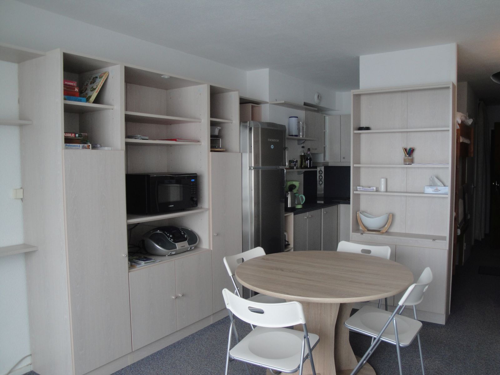 L'appartement est équipé d'une kitchenette et, au rez-de-parking, d'un casier à skis