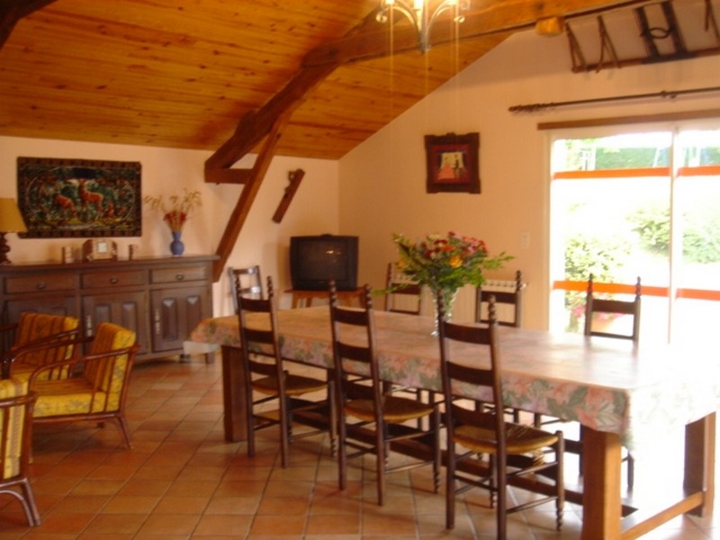 Beau gîte spacieux de plain-pied, indép. accessible aux pers. à mobilité réduite sur exploitation agricole en activité. Cuisine intégrée (l-vaisselle, micro-ondes, tél téléséjour, frigo-congél.). Salle à manger, coin-salon (TV coul.). Débarras (l-linge). 4 ch. (3 lits 1 pers. 3 lits 2 pers.), 2 wc, s.d.b (baignoire & douche). Douche/wc handicapés. Salle de jeux. Ch. gaz en suppl. (forfait de 130 €/semaine). Terrain. Barbecue. Salon de jardin. Draps, ingrédients petit-déj. fournis. Ménage quotidien : 9 €/heure. Ménage fin de séjour : 46 €. BEBE A BORD.