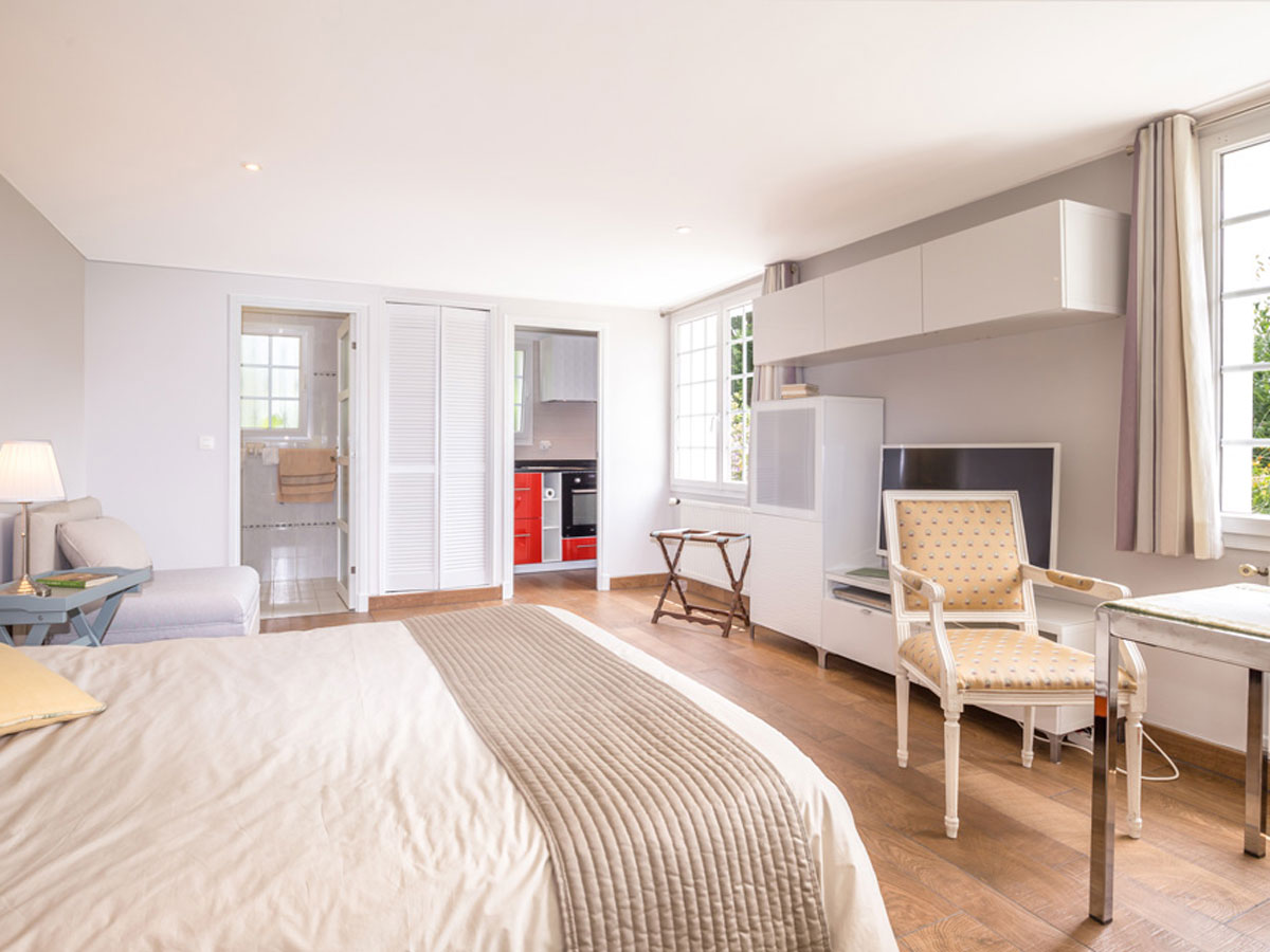 Entre mer et montagne. Un studio avec cuisine équipée et une chambre d'hôte dans un calme absolu, un endroit magique, en bordure du golf de Chantaco à 2,5 km du centre-ville et des plages. Pour un week-end ou vos vacances, à mille lieux de l'agitation de la ville. Grande piscine, transats et terrasses privatives. Télévision, connexion wifi, réfrigérateur. Le petit déjeuner continental vous sera servi au bord de la piscine si la saison le permet. Les vélos en location vous feront découvrir notre belle campagne et la piste cyclable vous emmènera jusqu'à l'océan. Parking sécurisé.