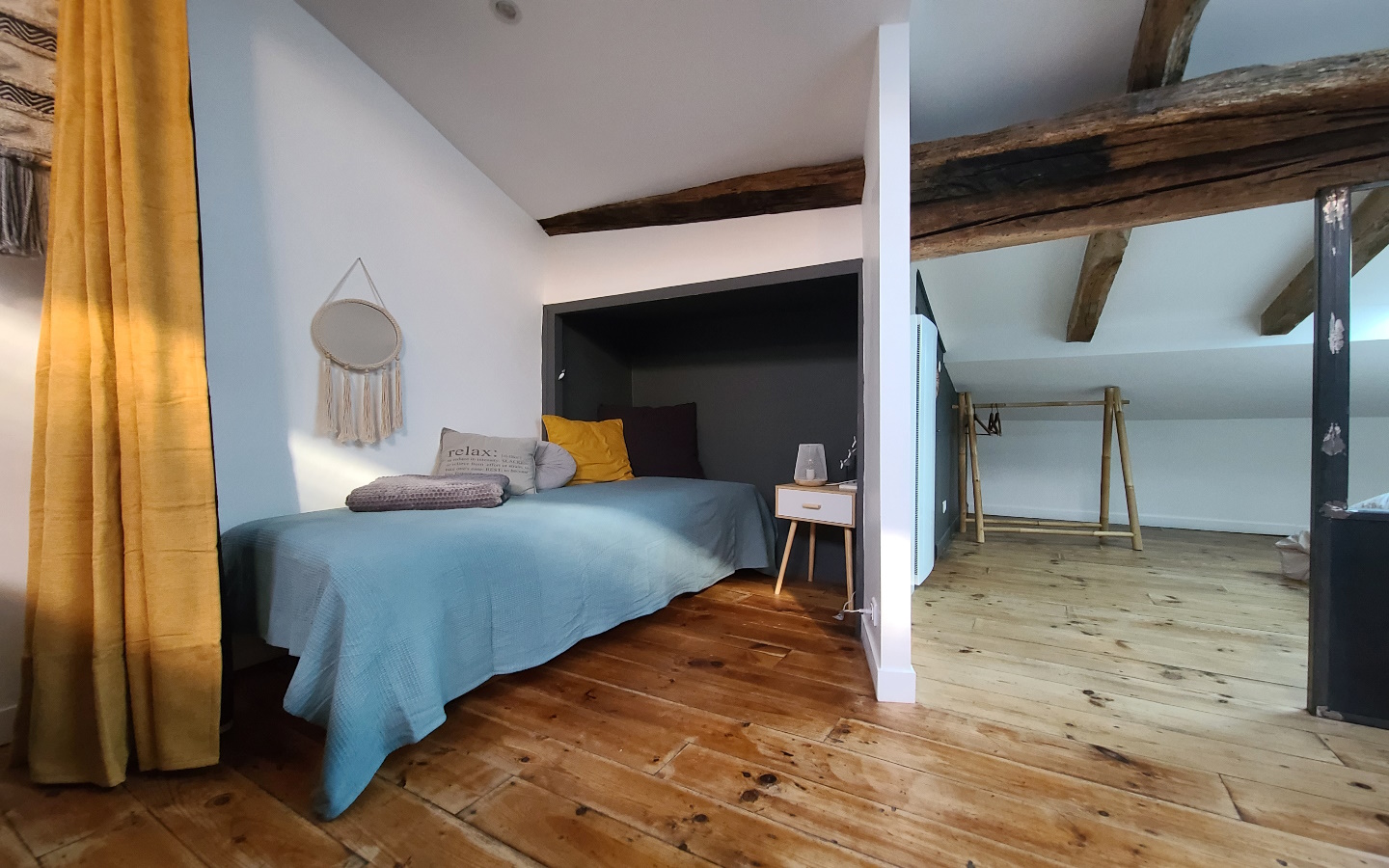 Ce studio spacieux est situé au cœur de la rue de la Citadelle, dans le centre historique piétonnier, au pied du chemin de Saint-Jacques de Compostelle et sur le GR 10. Ce studio loft se tient au deuxième étage d'une maison du XVIIIème siècle et accueille jusqu'à 3 personnes. Les lits sont faits à l'arrivée. Le logement est tout équipé. Le studio possède 1 lit (160) et 1 lit simple (80), possibilité de 3 lits simples et d'un lit pour bébé sur demande.