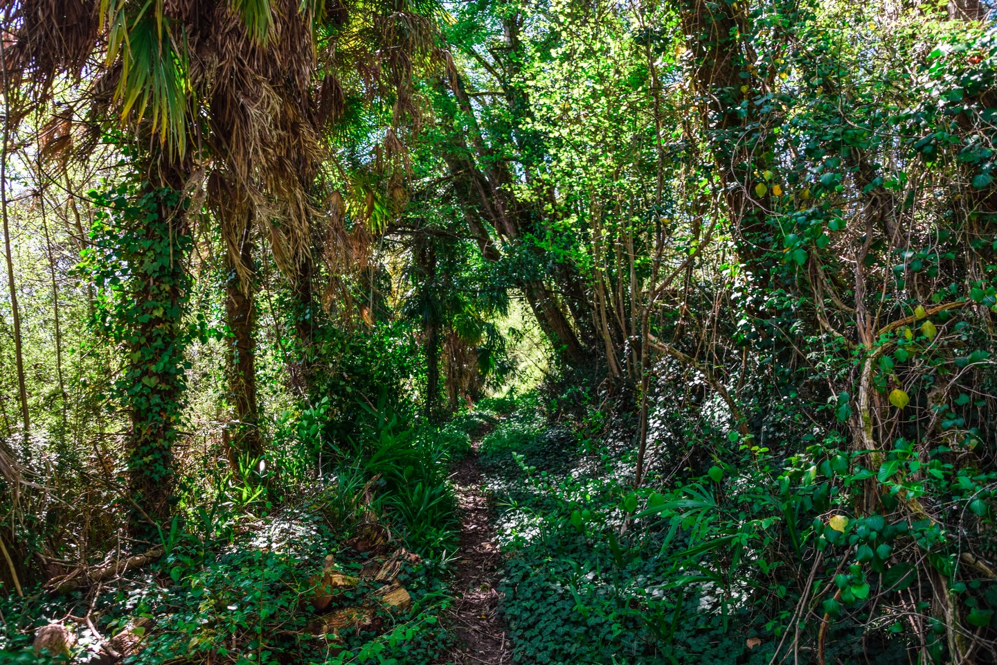 Etape 5 : Bois du Broca Prendre 10m après à gauche, l’allé herbeuse qui monte. Arriver en haut prendre entre les maisons en direction du bois du Broca (PR2). Descendre en écharpe dans le bois en suivant les triangles jaune sur les arbres, et atteindre la fontaine des bains du Broca.