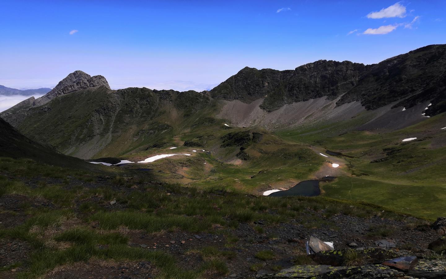 Etape 4 : Lac de Louesque Poursuivre cette crête quelques dizaines de mètres puis descendre à droite en traversée afin d'arriver au lac Supérieur, premier laquet visible depuis la crête. Le longer par la rive droite pour arriver au Lac de Louesque puis au lac Inférieur. Une alternance de courts ressauts et de vallonnements vous amène dans les pentes herbeuses en direction de la cabane de Coste de Goua où nous vous conseillons de redescendre par le GR10.