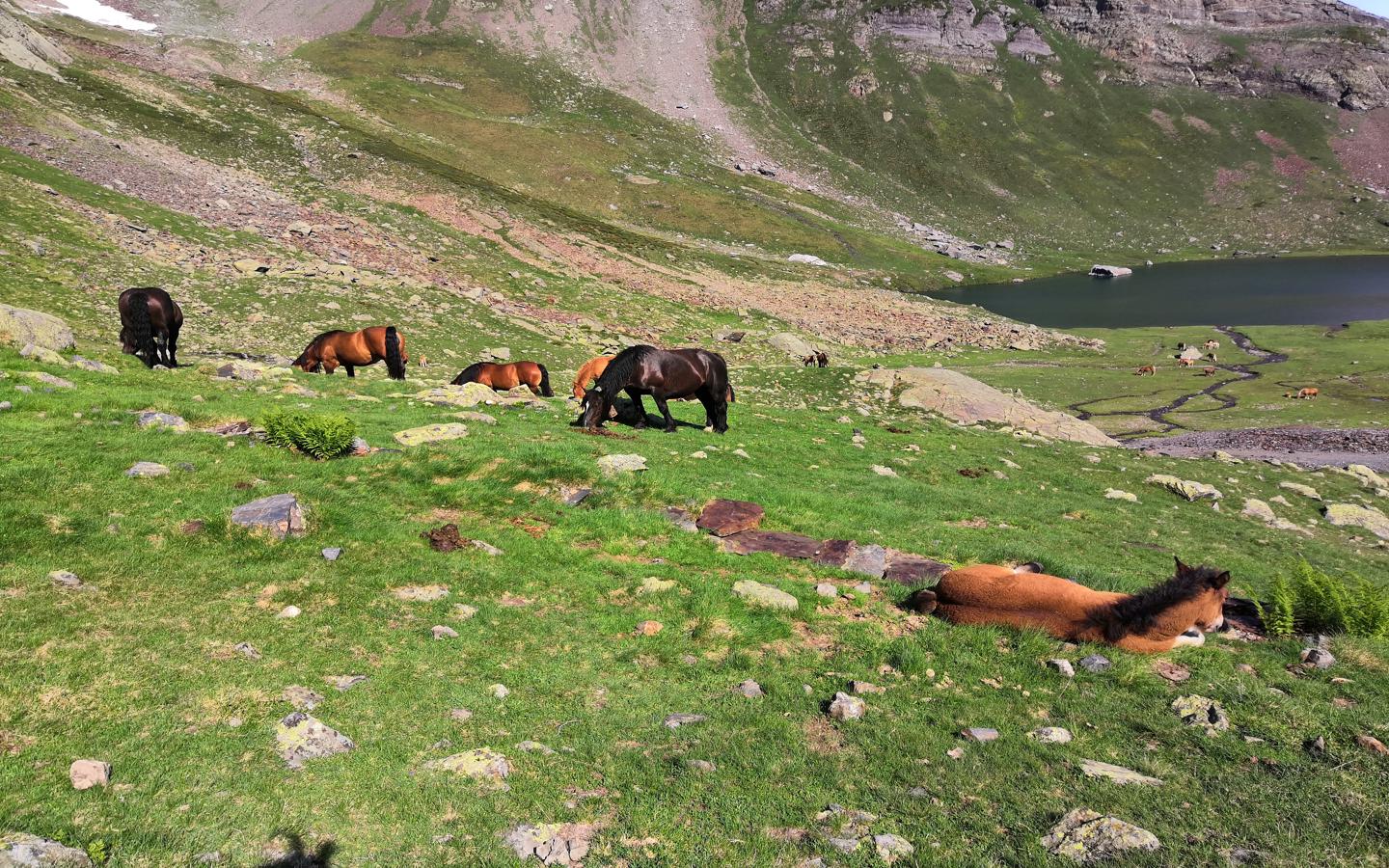 ZONE DE PASTORALISME (Site culturel)Au cours de la randonnée vous pourrez rencontrer des troupeaux de brebis, vaches ou encore chevaux en estive. Les animaux vivent en liberté en montagne pendant la saison estivale et y pâturent librement. Certains sont gardés par un berger et d'autres par des Patous, chiens de garde de troupeaux. L'estive est une tradition pastorale ancestrale encore courante en Vallée d'Ossau.