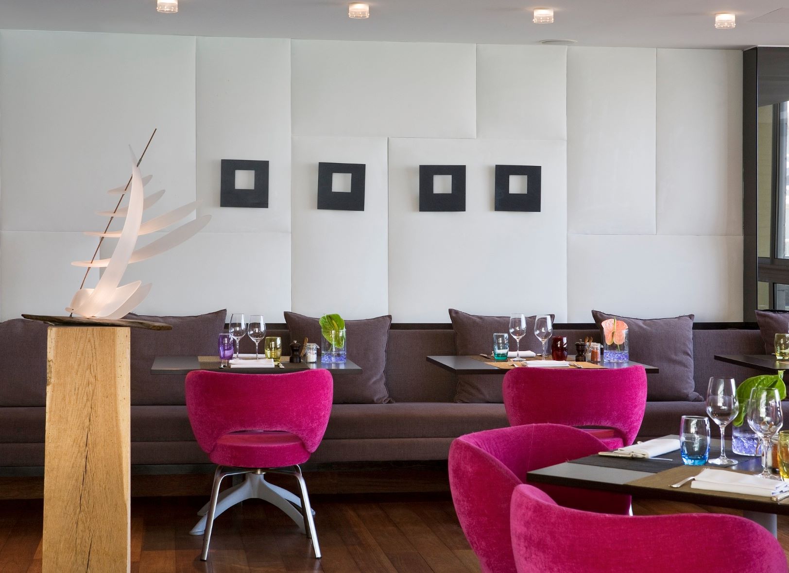 Agréablement installés en bordure de piscine, dans un cadre contemporain éclairé par de grandes baies vitrées, les gourmets peuvent déguster une cuisine qui évolue au gré des saisons et de la créativité du Chef.