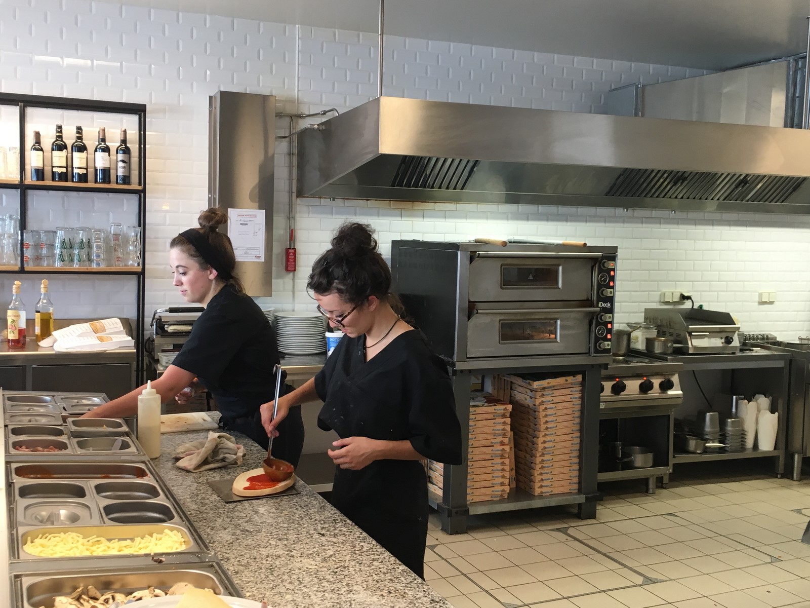 A table, la pâte à pizzas est faite maison. Vous pouvez profiter d'un vaste choix de salades, de plats combinés et de desserts maison... et chaque midi, un menu du jour vous est proposé. Pour manger sur le pouce, sandwichs variés, wraps et burgers maison...